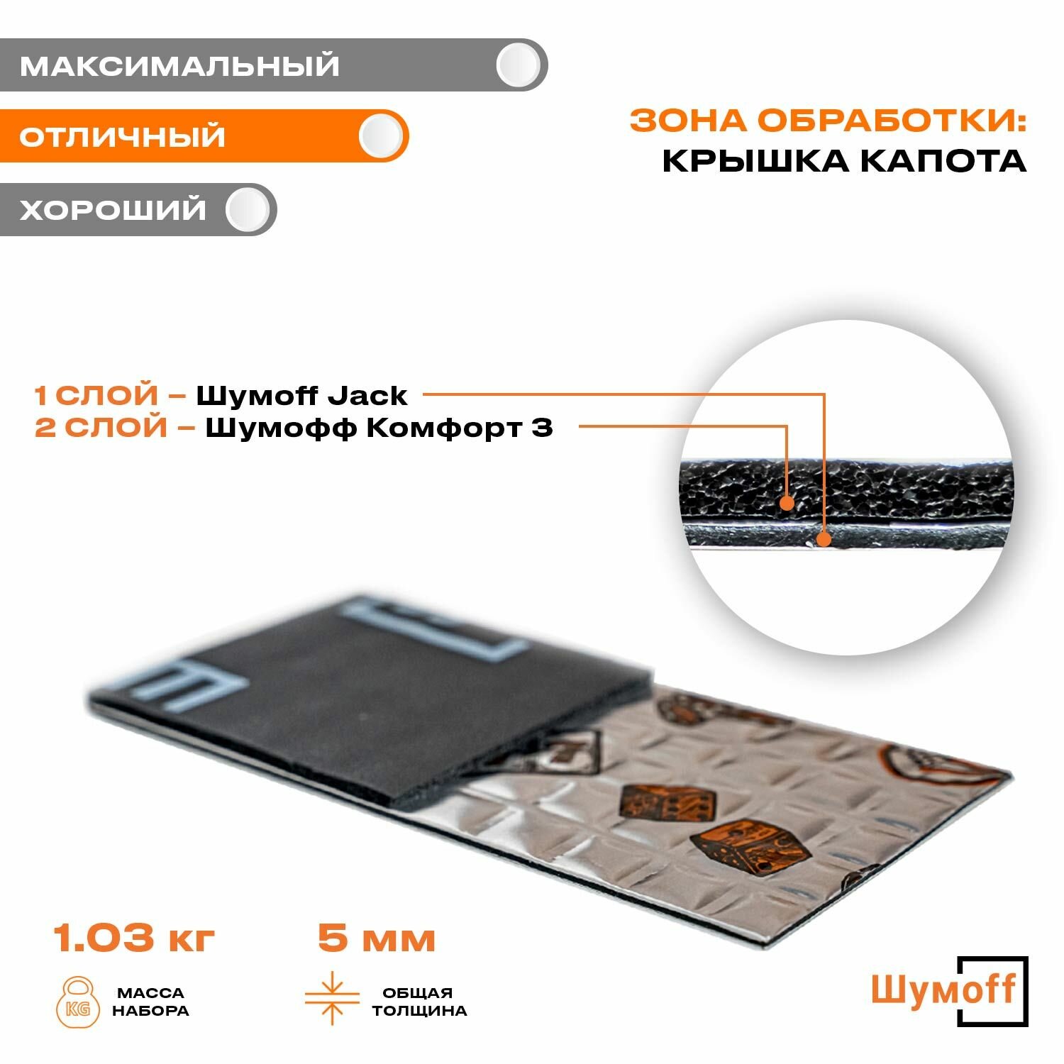 Шумоизоляция Виброизоляция Шумoff Jack | 12 листов (1,2 кв. м) | Автотовары | Для дома