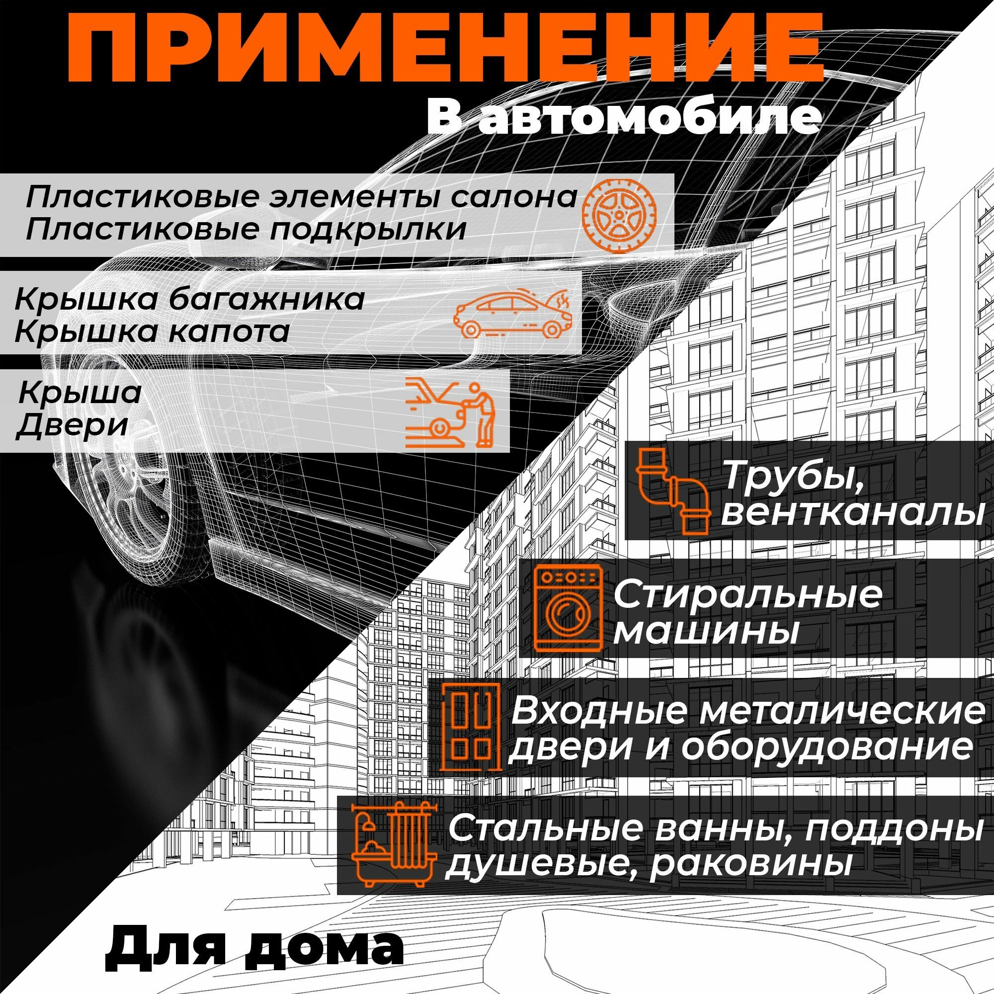 | Место применения | виброизоляция / вспомогательный материал / для арок / для багажника / для дверей / для зазоров / для капота / для пола / для потолка / для приборной панели / теплоизоляция / шумоизоляция |