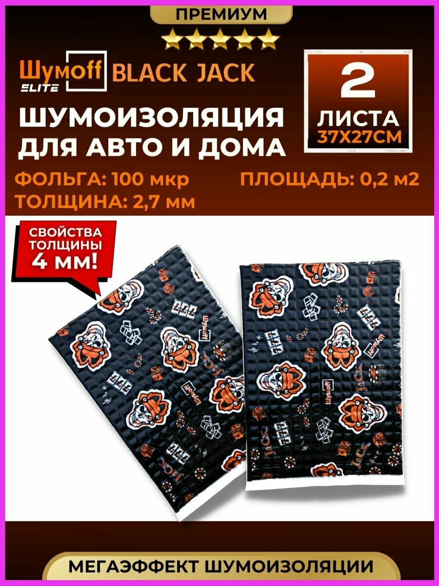 Шумоизоляция для автомобиля Блек Джек 10 листов. Толщина 2,7 мм = 4 мм. Виброизоляция авто, вибропласт, вибродемпфер, шумка в машину. Шумоизоляция для дверей, крыши, потолка, пола, багажника, арок Шумоff Black Jack. Шумоизоляция стояка, труб, ванны