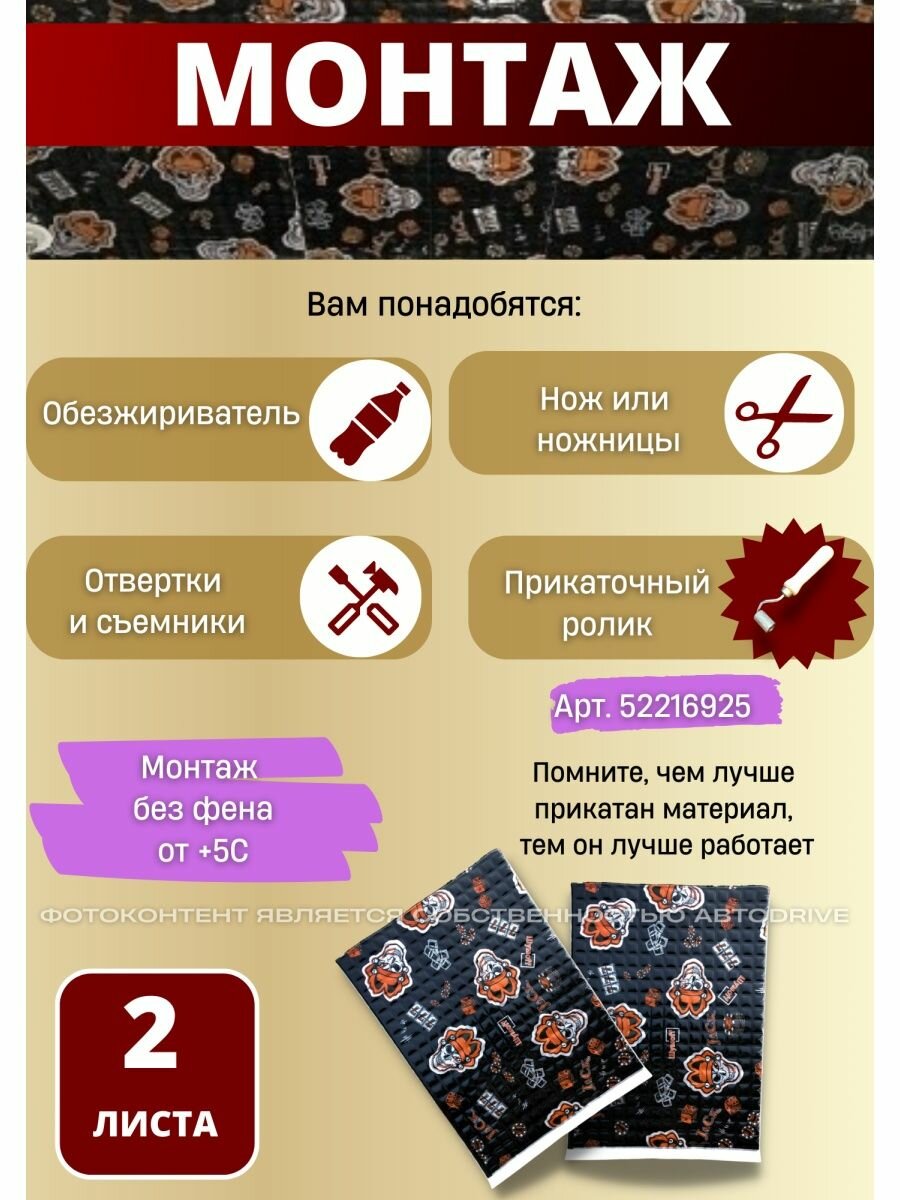 | Место применения | виброизоляция / для арок / для багажника / для дверей / для зазоров / для капота / для пола / для потолка / теплоизоляция / шумоизоляция |