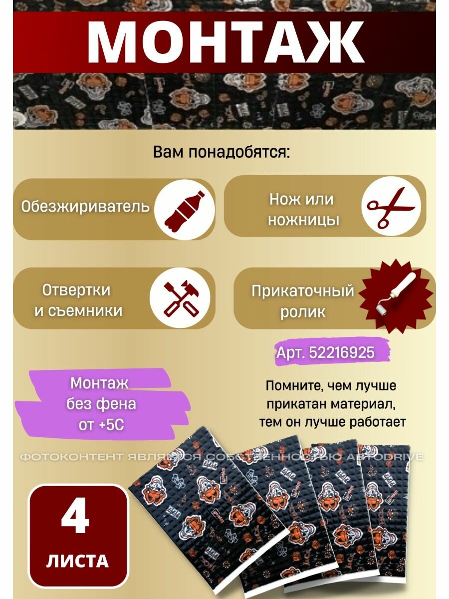 | Место применения | виброизоляция / для арок / для багажника / для дверей / для зазоров / для капота / для пола / для потолка / теплоизоляция / шумоизоляция |