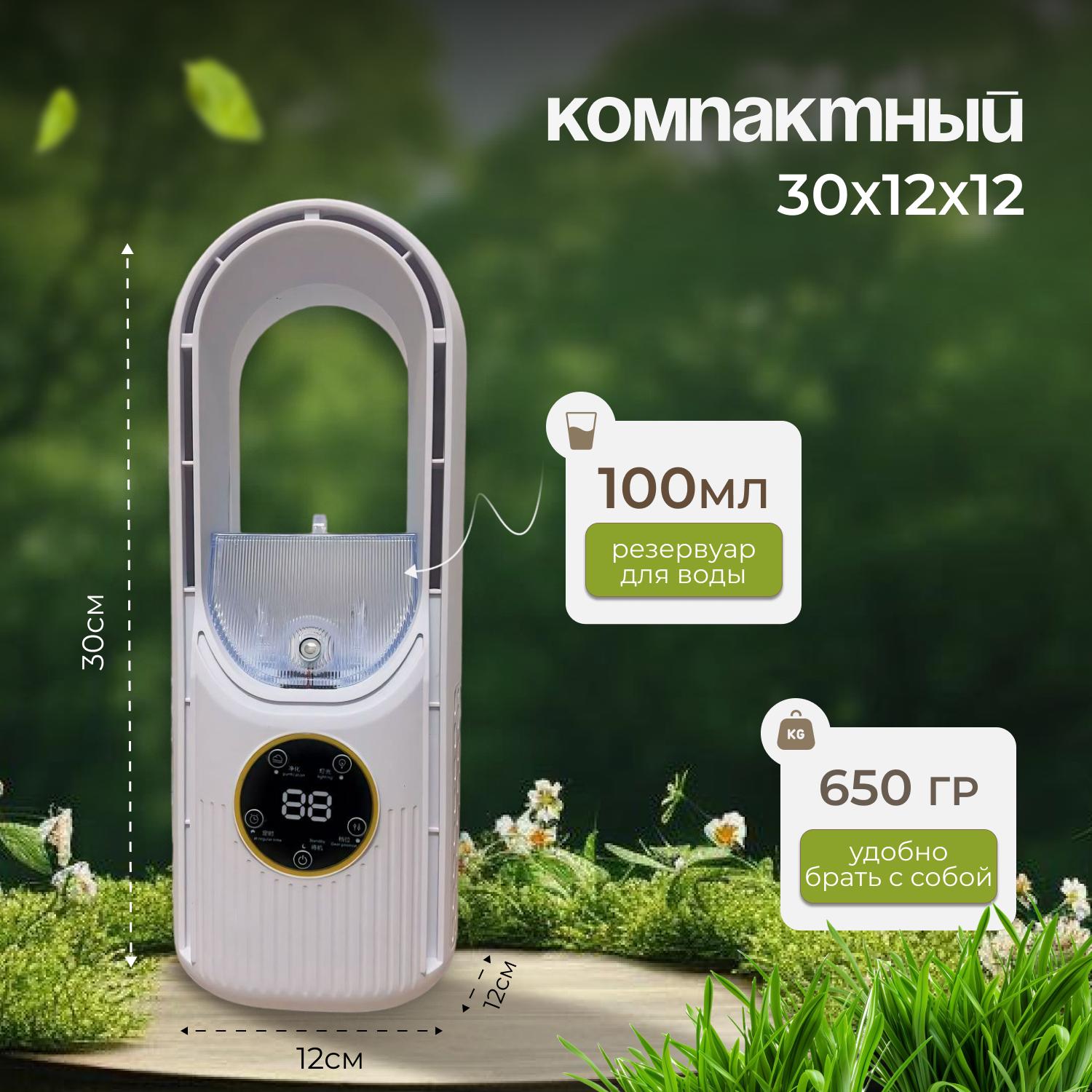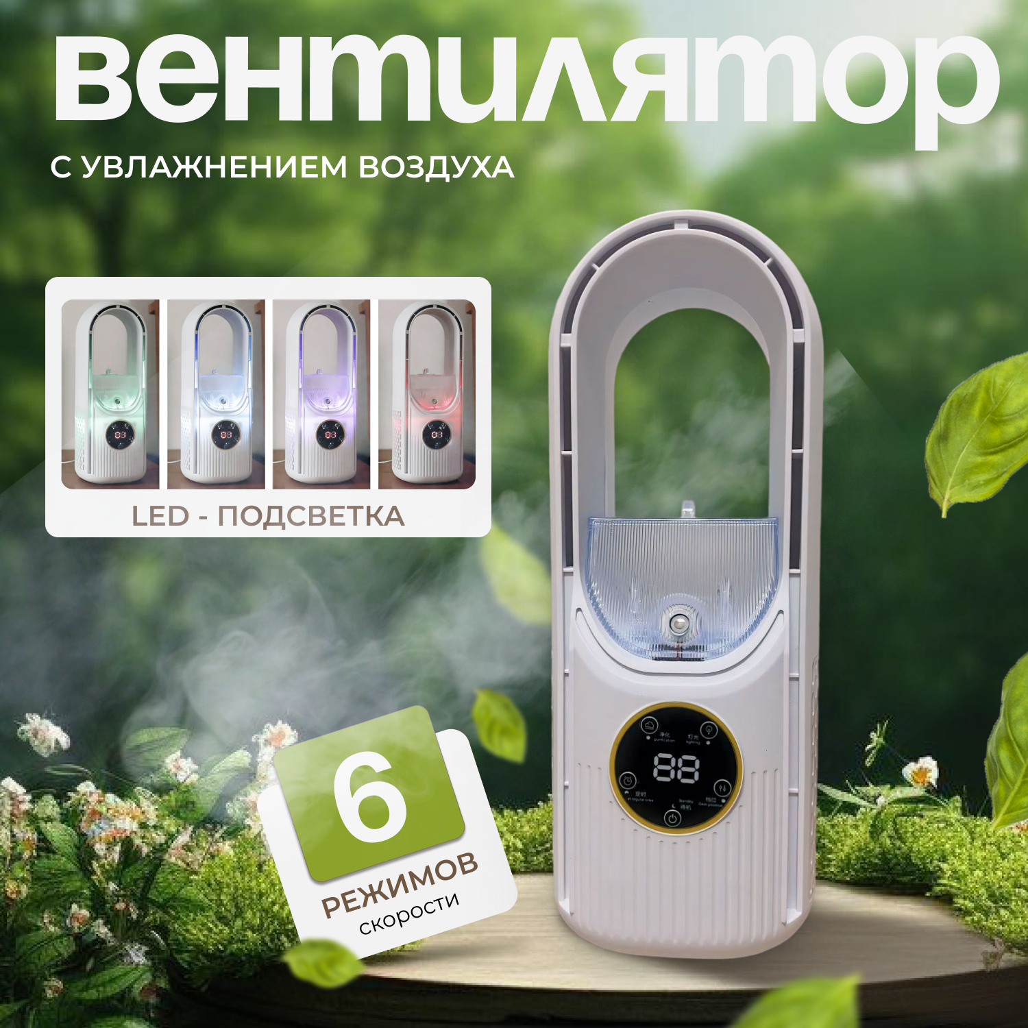 Настольный вентилятор без лопастей, охлаждения воздуха для дома и офиса, Увлажнитель воздуха с подсветкой, 6 скоростей, Белый интересное: