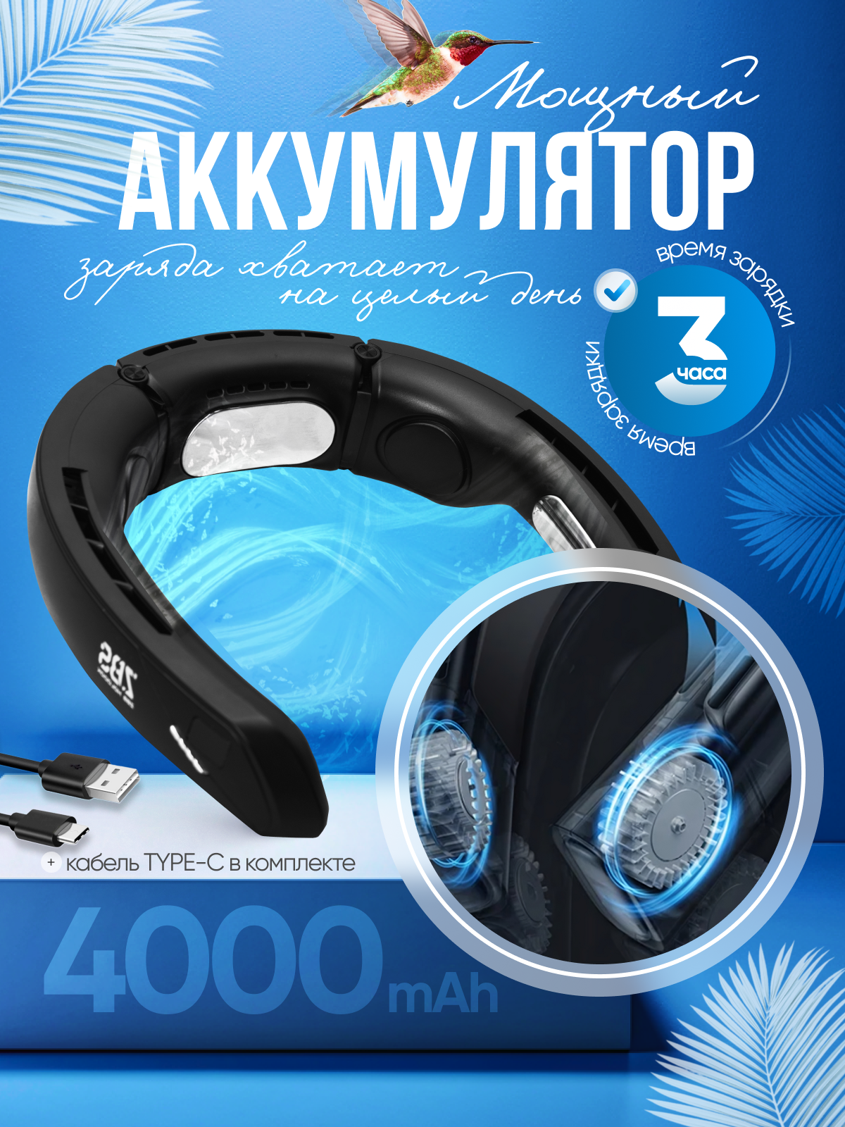 Вентилятор на шею беспроводной портативный