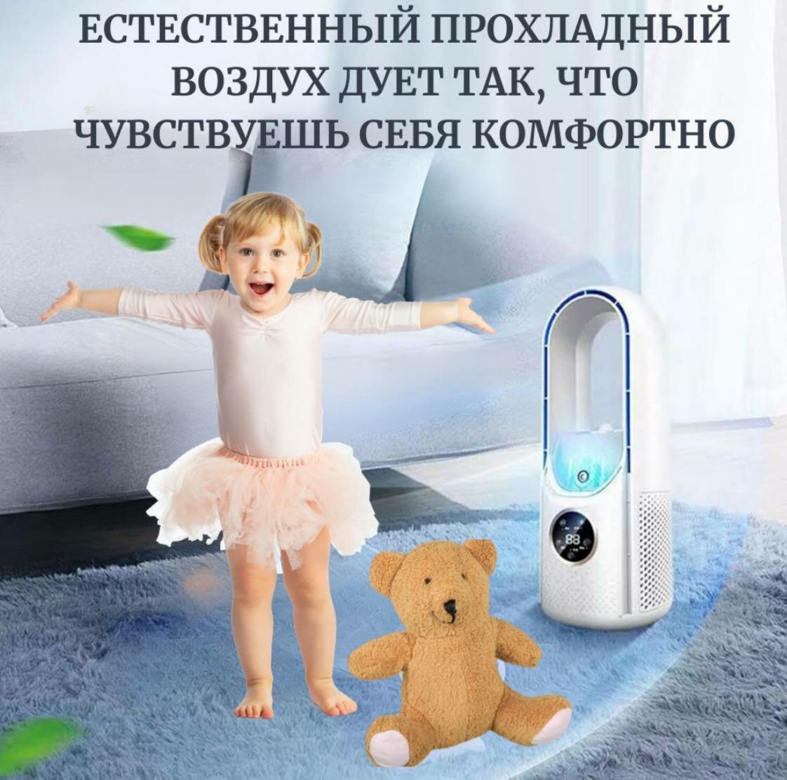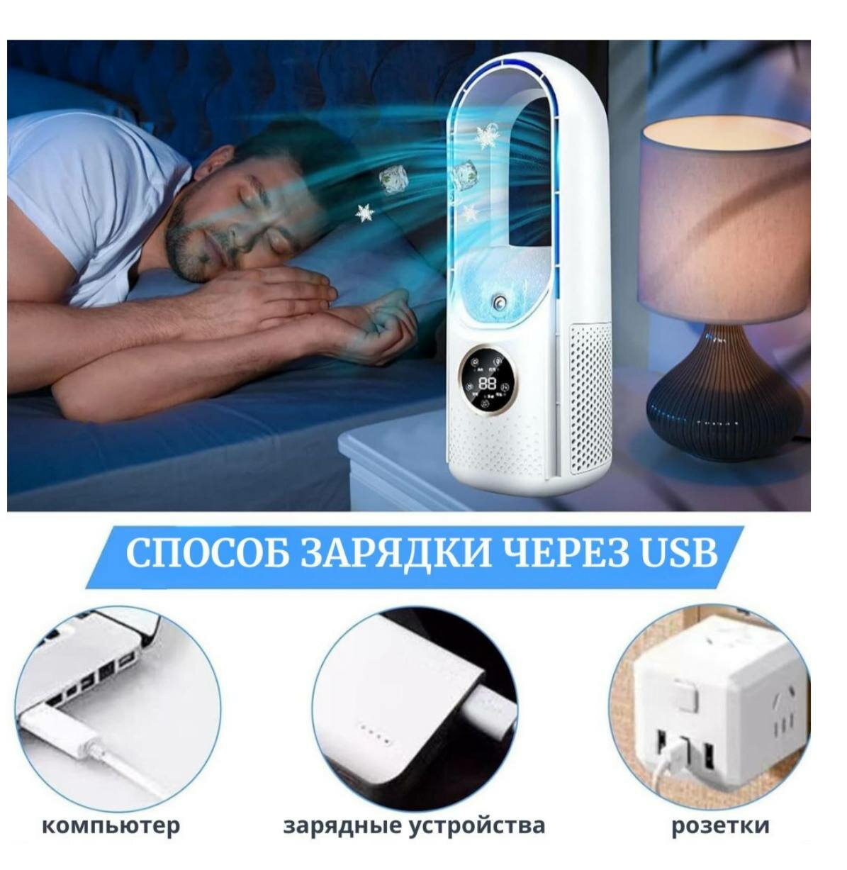 Колонный безлопастной вентилятор охлаждения воздуха для дома и офиса, Увлажнитель воздуха с подсветкой, 6 скоростей, Белый интересное: