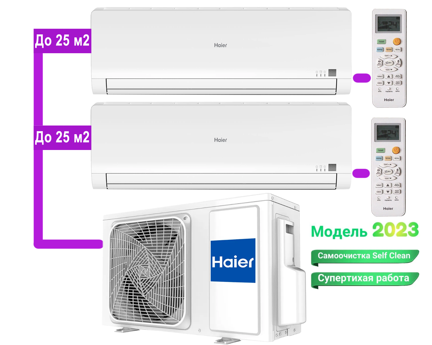 Мульти сплит система инвертор на 2 комнаты Haier 2U40S2SM1FA / AS09BS4HRAx2 серия FAMILY белый матовый (25м2+25м2) интересное: