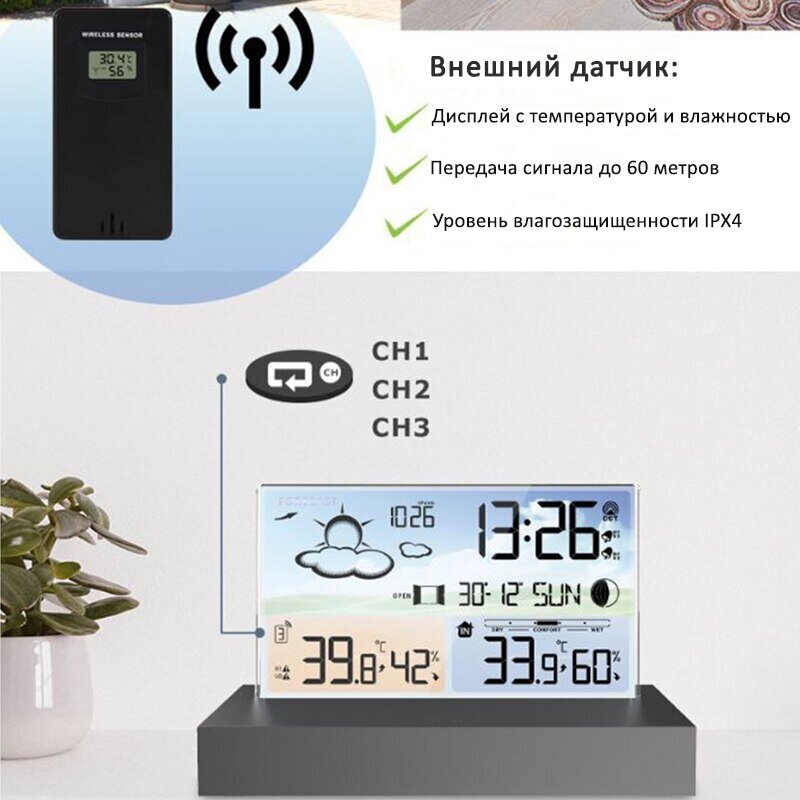 Купить Погодная станция для дома с внешним датчиком / Беспроводная метеостанция с прогнозом погоды / 1 датчик