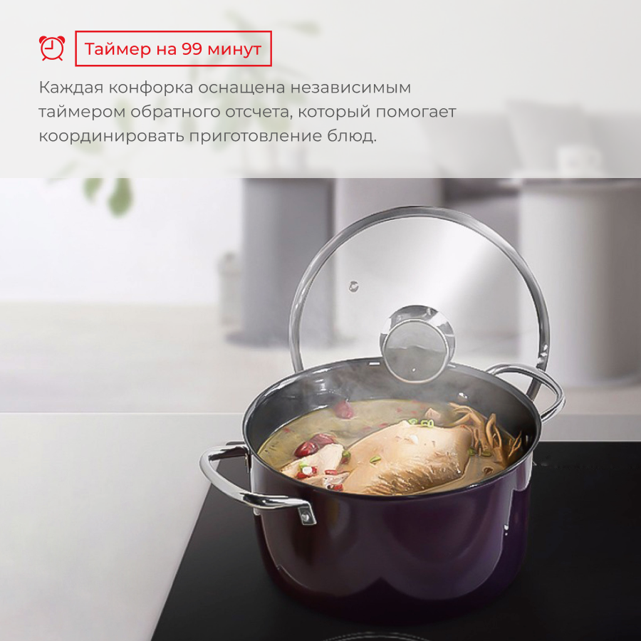 | Безопасность | защитное отключение конфорок / индикатор остаточного тепла / кнопка блокировки панели |