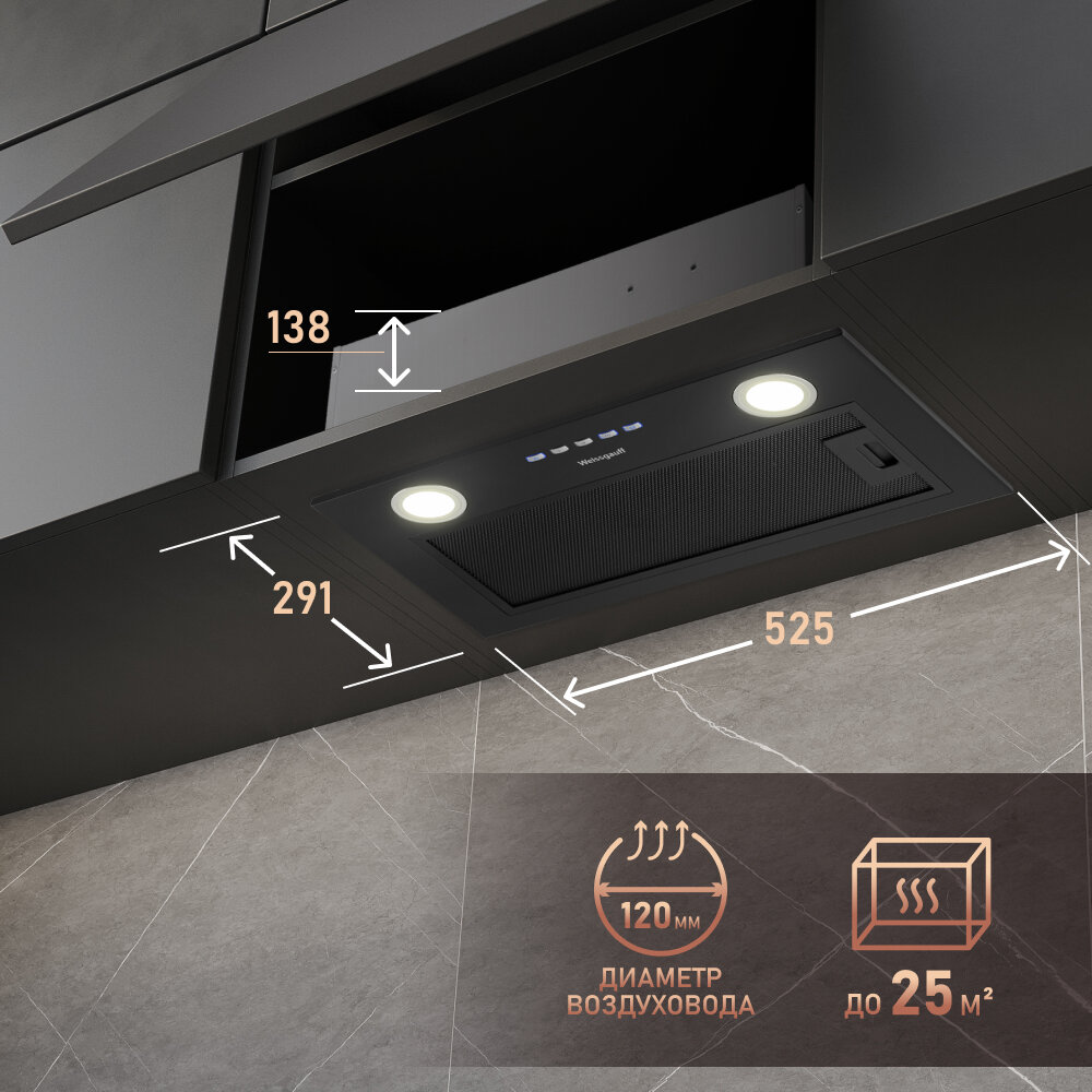 Кухонная встраиваемая вытяжка Weissgauff FIONA 60 BL 3 года гарантии, Алюминиевый жировой фильтр, Низкий уровень шума интересное: