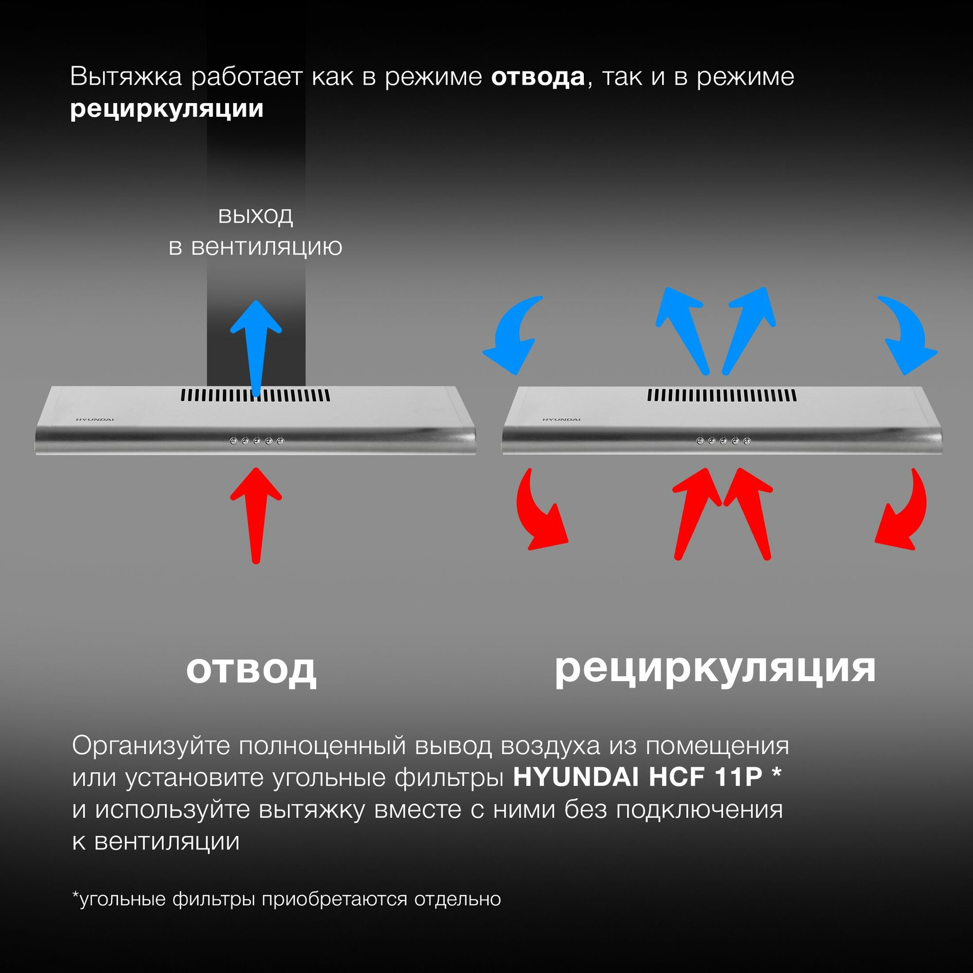 Вытяжка козырьковая Hyundai HFH 6130 IX нержавеющая сталь управление: кнопочное интересное: