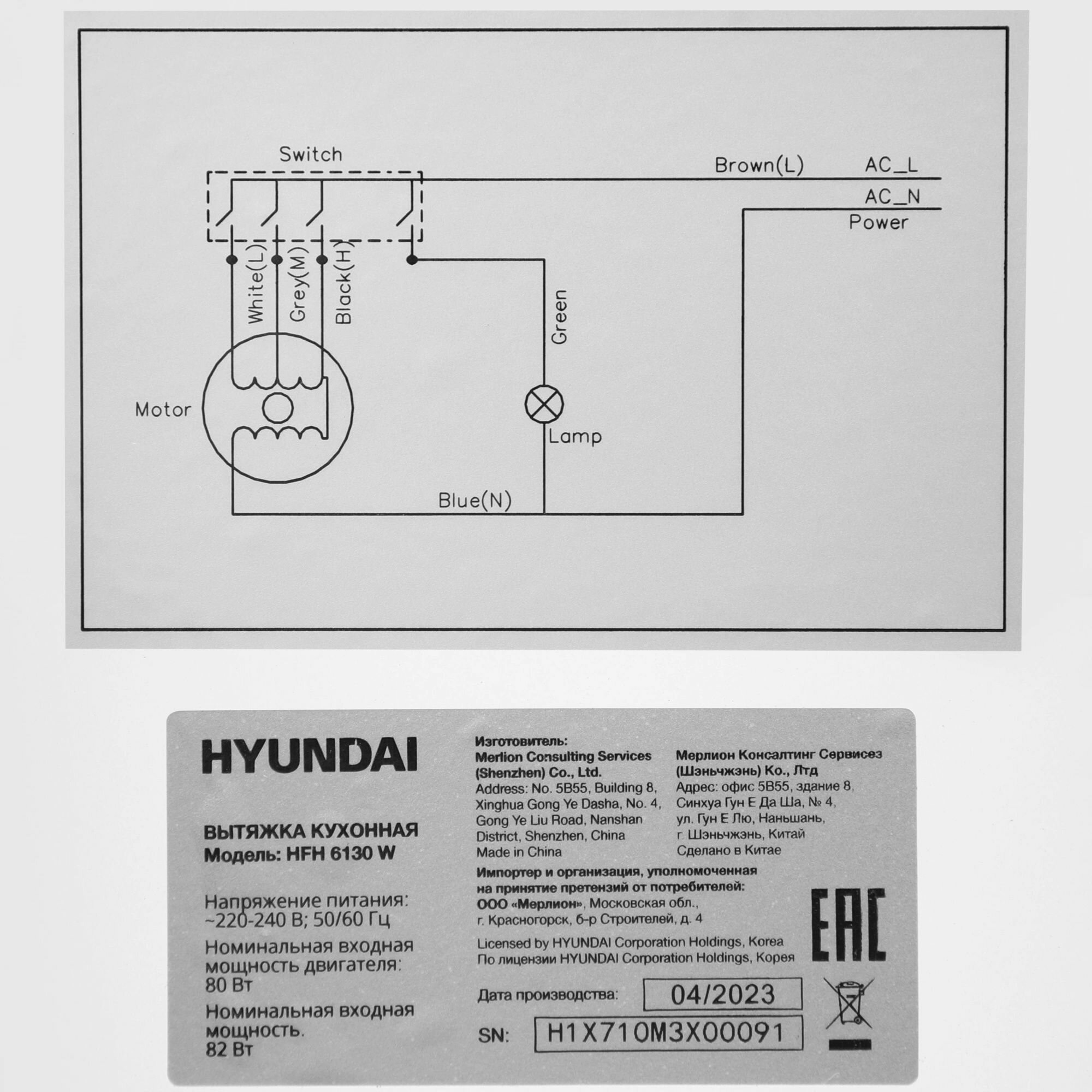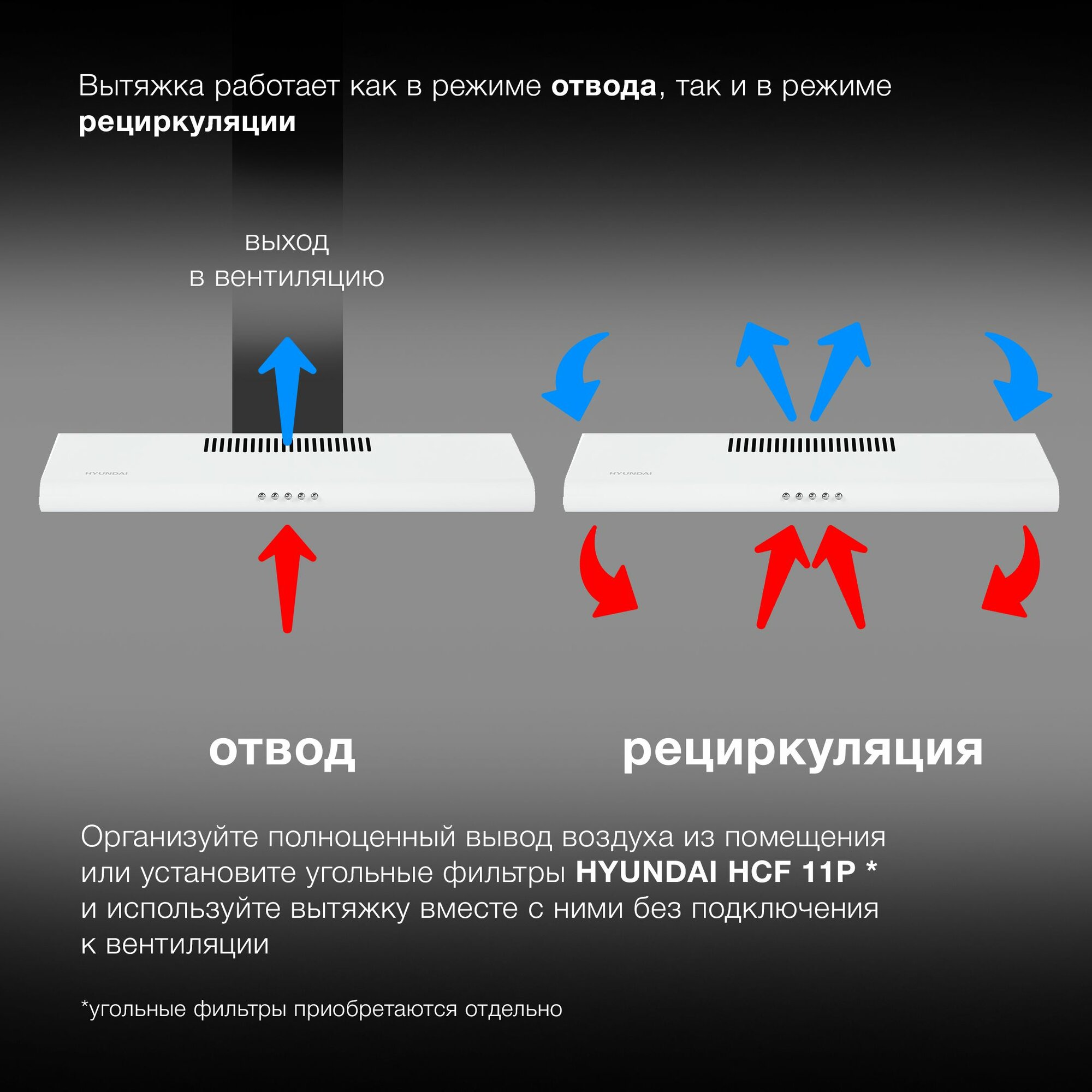 Вытяжка козырьковая Hyundai HFH 6130 W белый управление: кнопочное интересное: