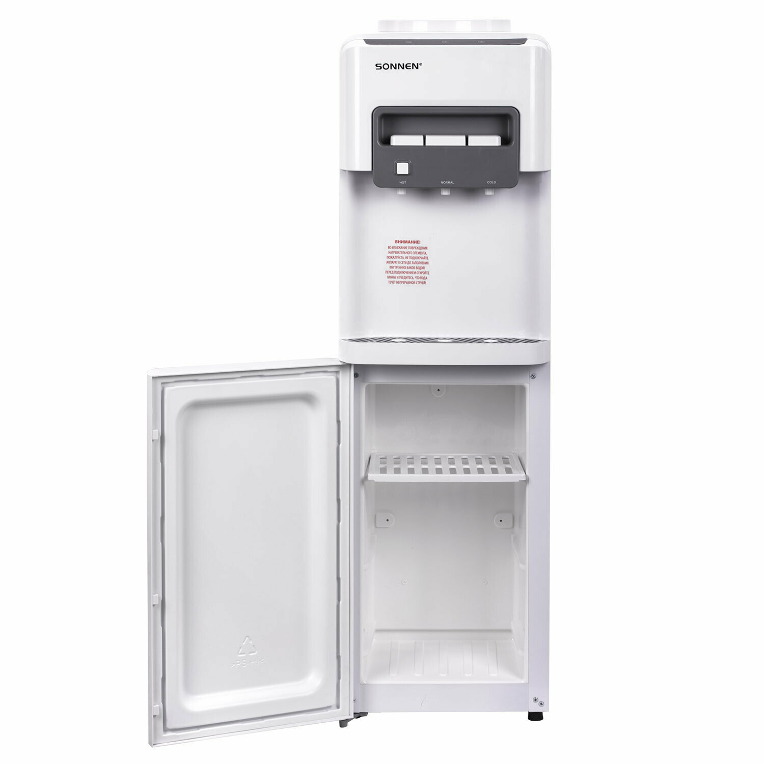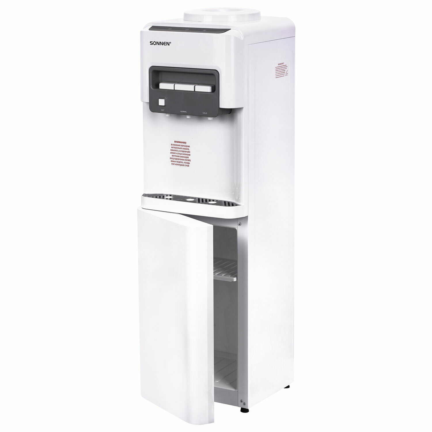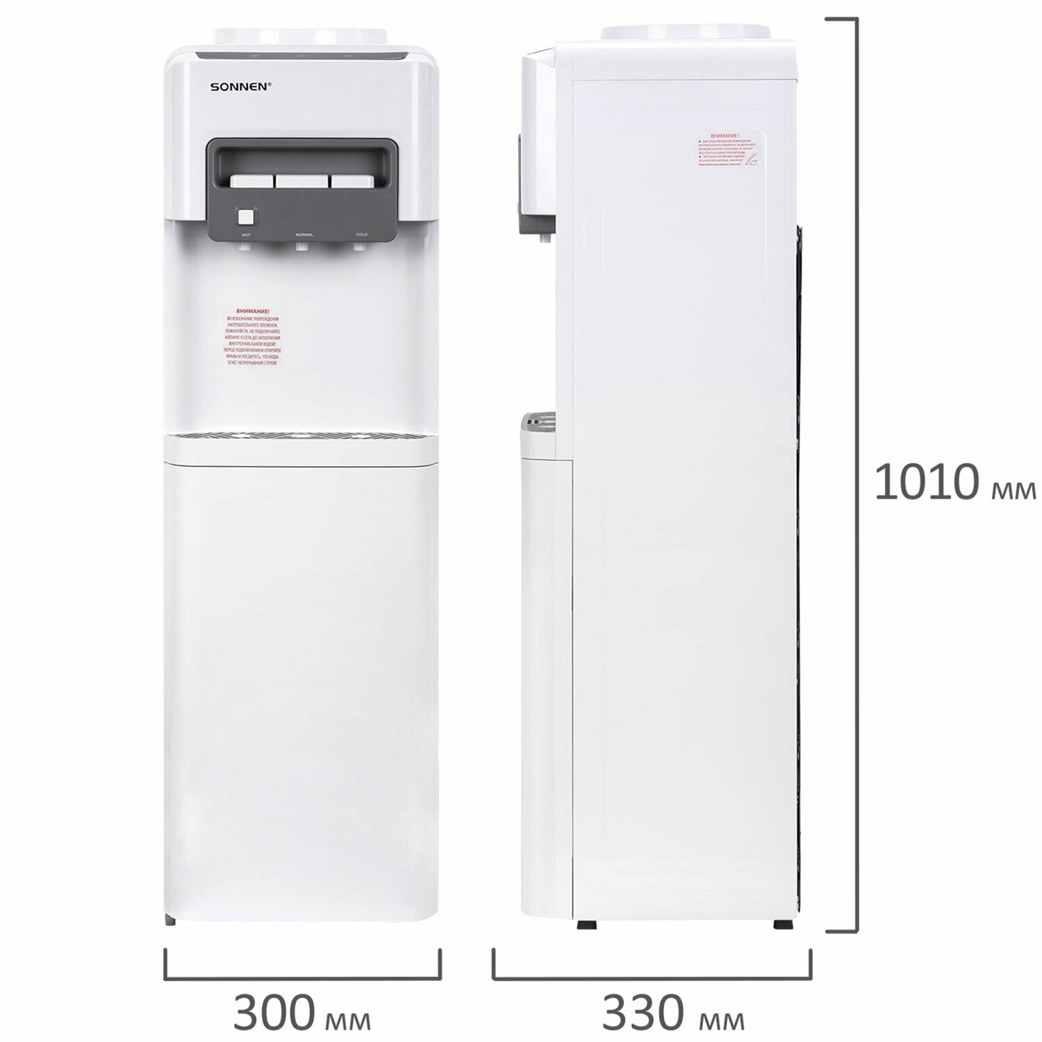 Купить Кулер для воды напольный с нагревом и охлаждением компрессорный, диспенсер с 3 кранами, шкафом белый, Sonnen FSC-03AC, 455419