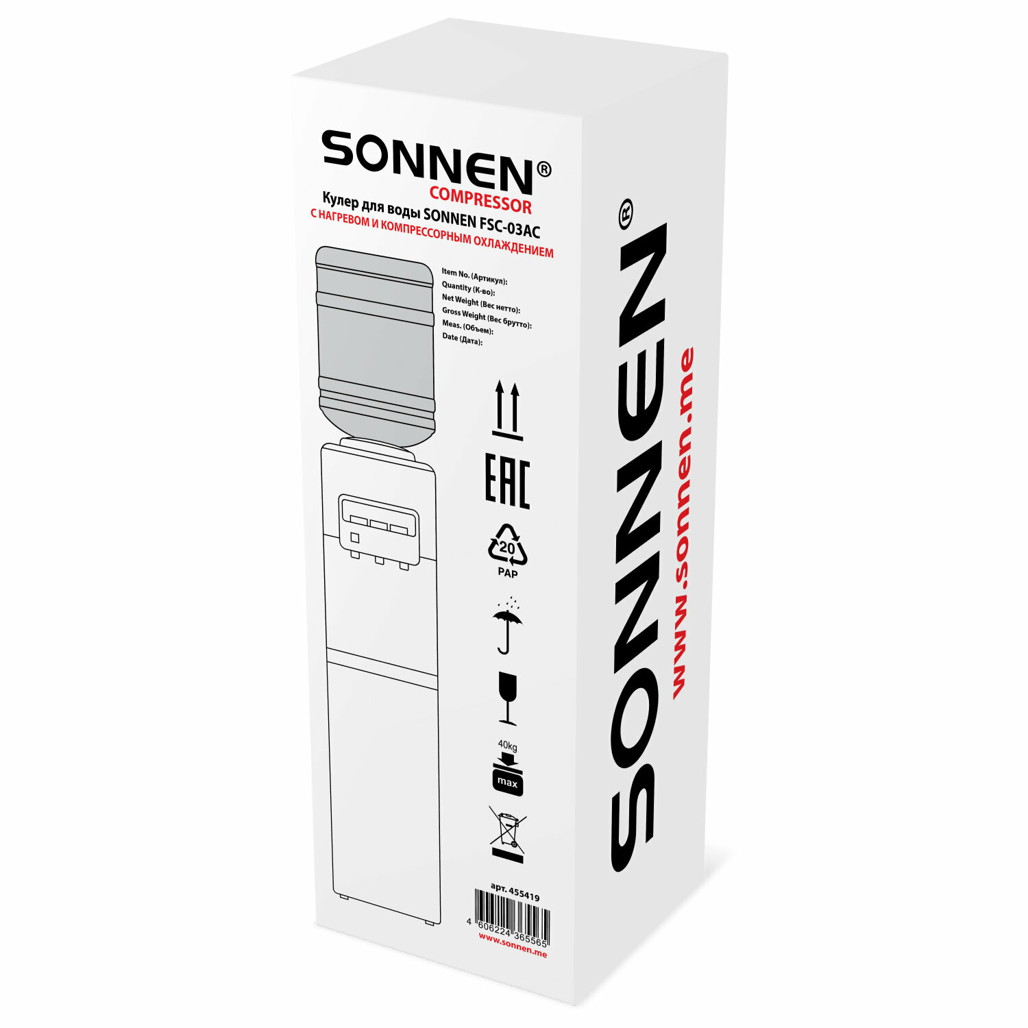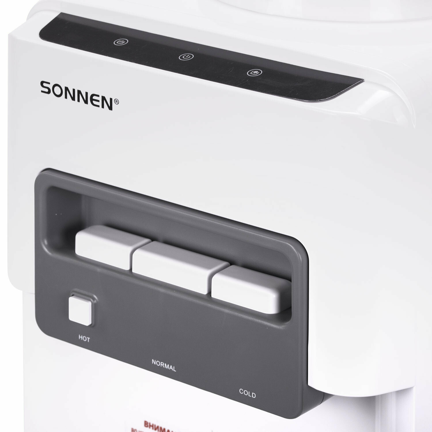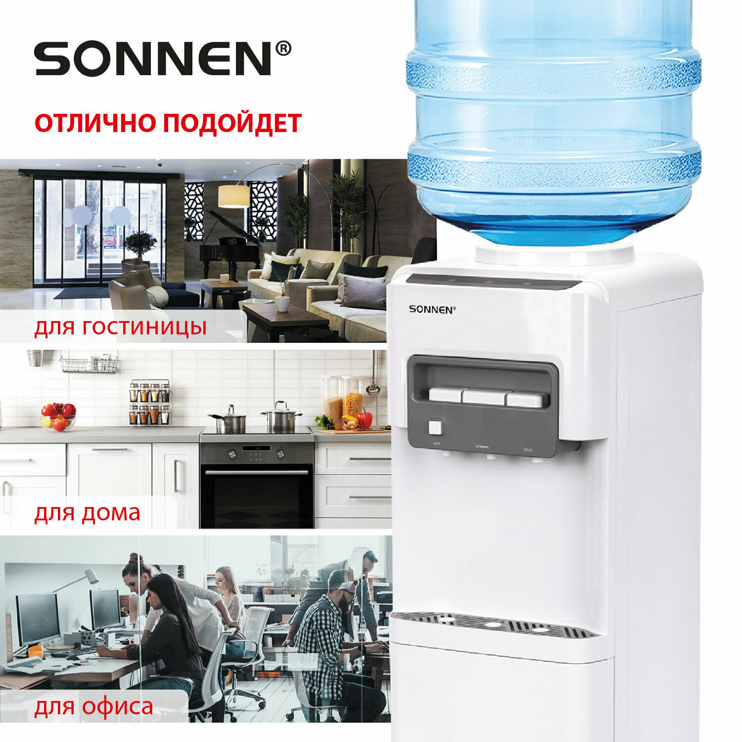 Купить Кулер для воды напольный с нагревом и охлаждением компрессорный, диспенсер с 3 кранами, шкафом белый, Sonnen FSC-03AC, 455419