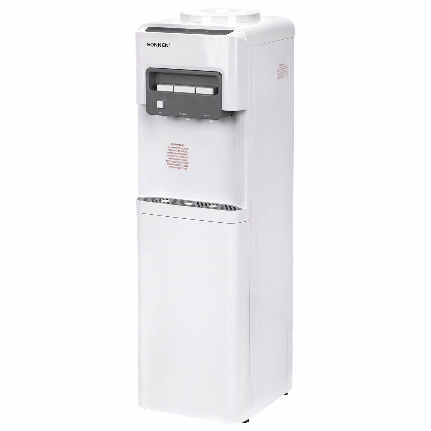Кулер для воды напольный с нагревом и охлаждением компрессорный, диспенсер с 3 кранами, шкафом белый, Sonnen FSC-03AC, 455419 интересное: