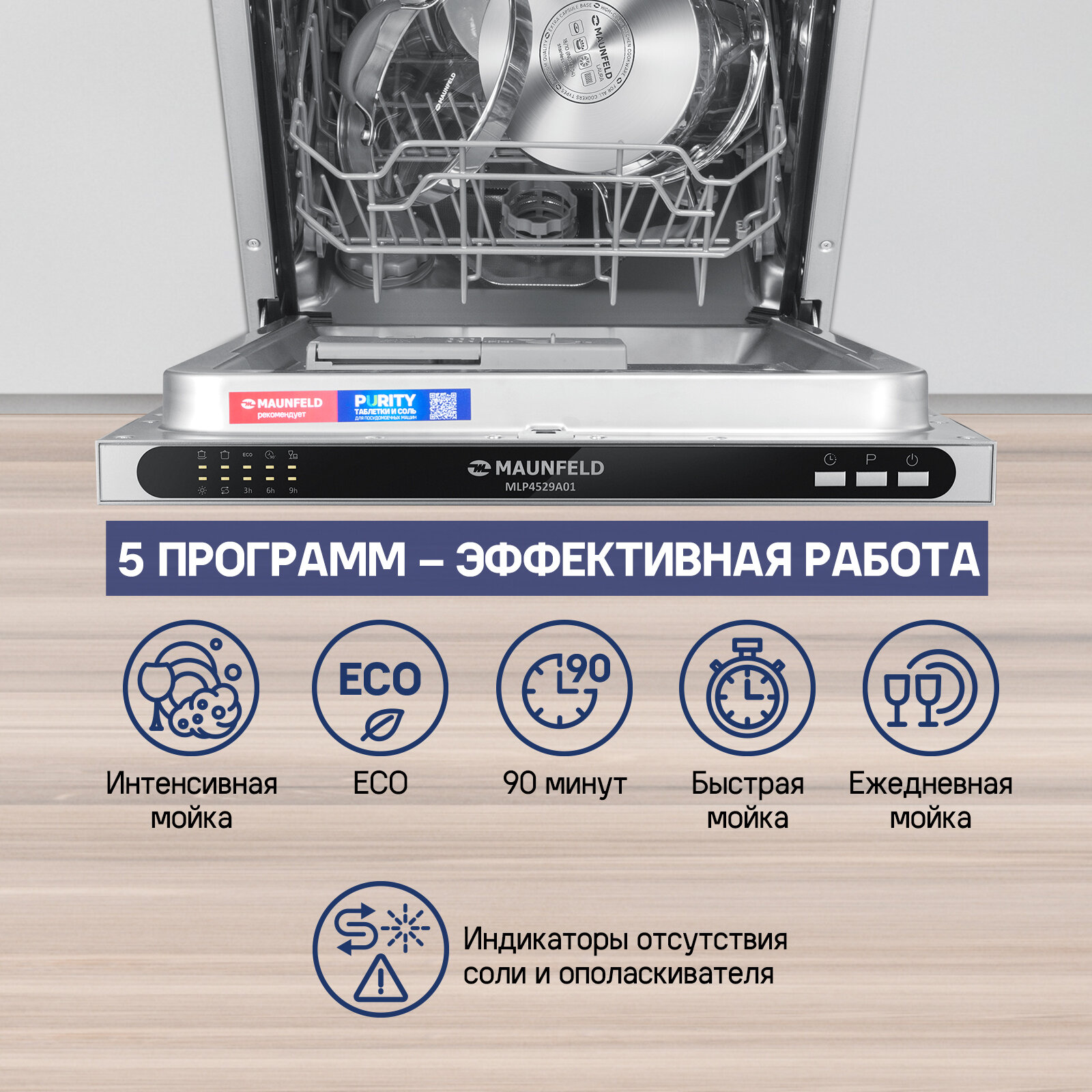 Встраиваемая посудомоечная машина Maunfeld MLP4529A01 Light Beam интересное: