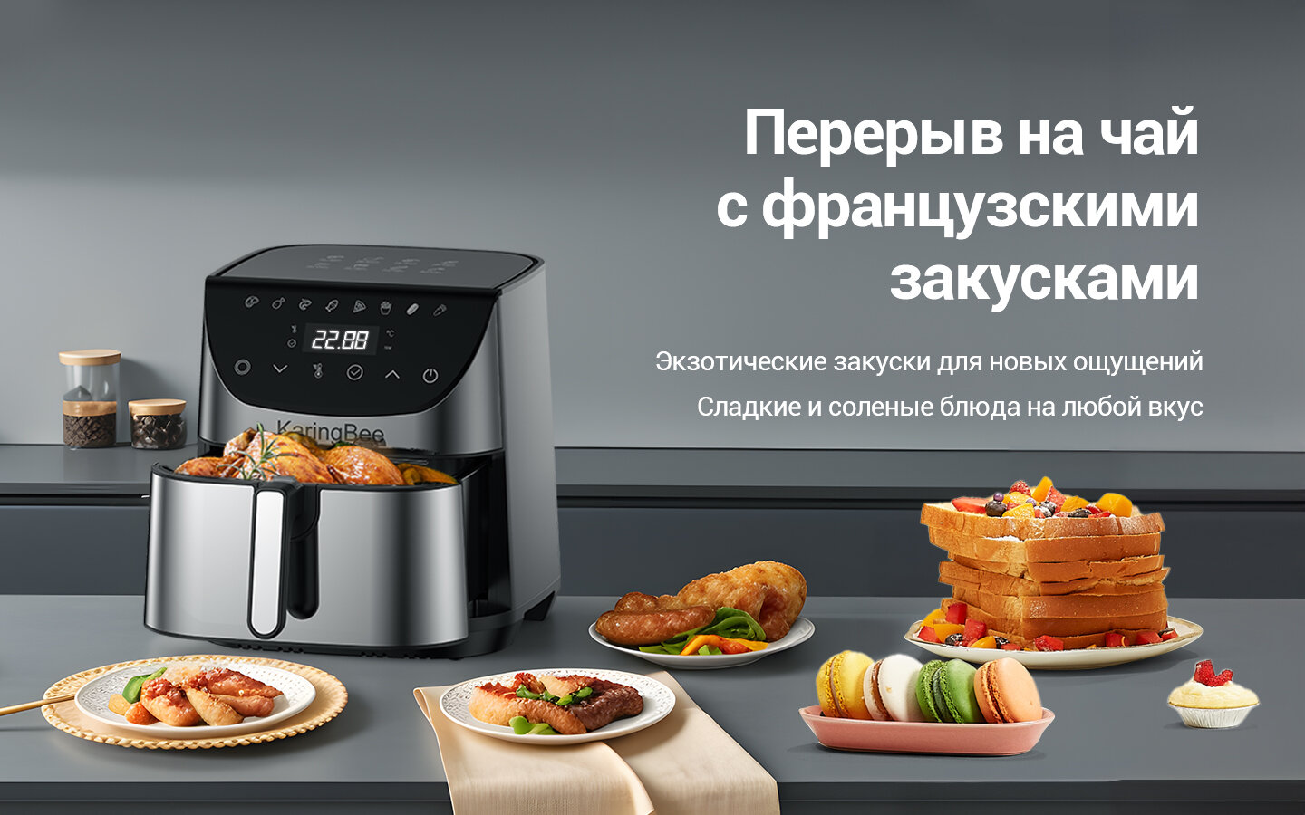 Аэрогриль KaringBee SZ-A807/из нержавеющей стали/7л + 8 программ/80-210°C 2000 Вт