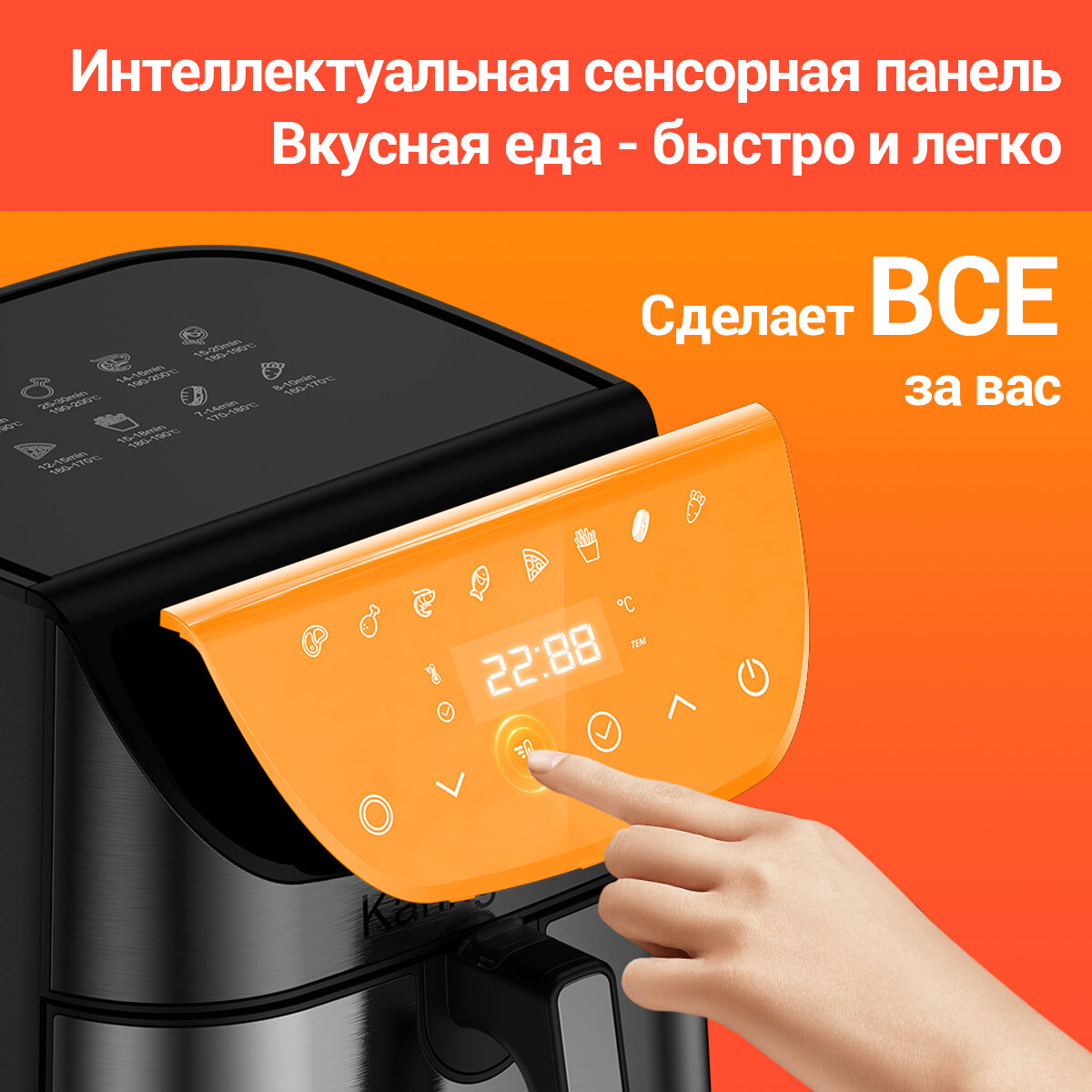 Аэрогриль электрический KaringBee SZ-A805 черный/Сенсорное управление/объем 10 л/8 программ приготовления/6 в 1 Аэрофритюрница электрическая для кухни 1400 Вт