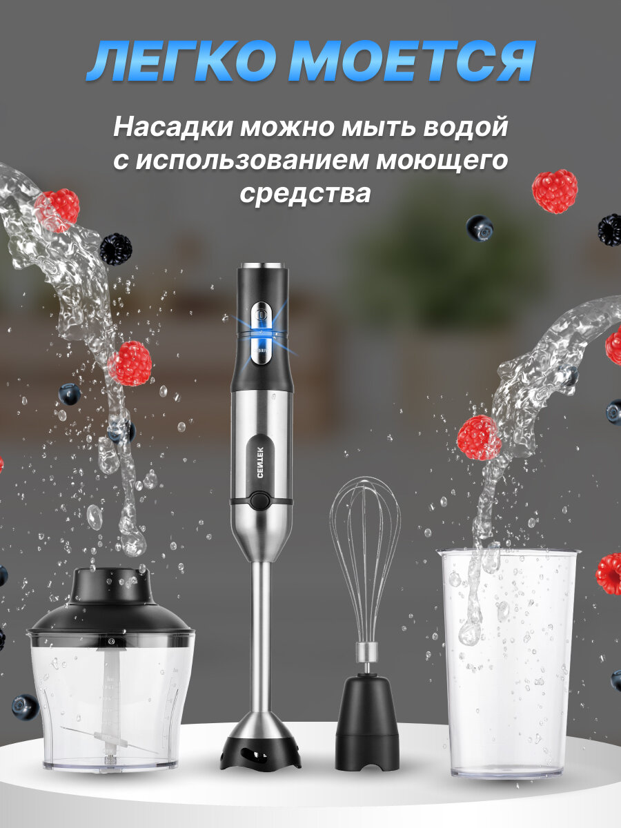 Блендер погружной CENTEK CT-1332 - черный, сталь 1500Вт, турбо режим, плавная регулировка, стакан, чоппер, венчик интересное: