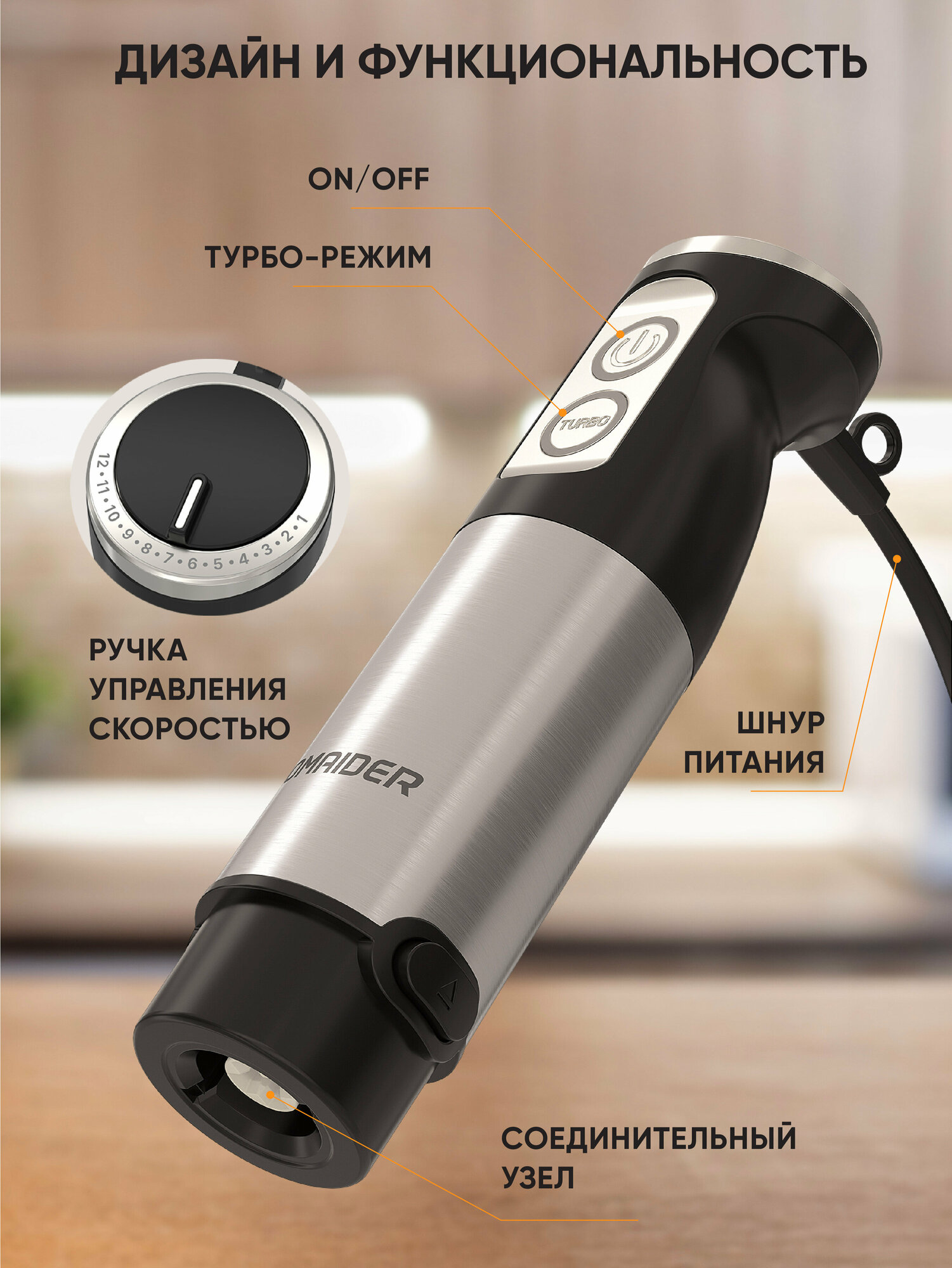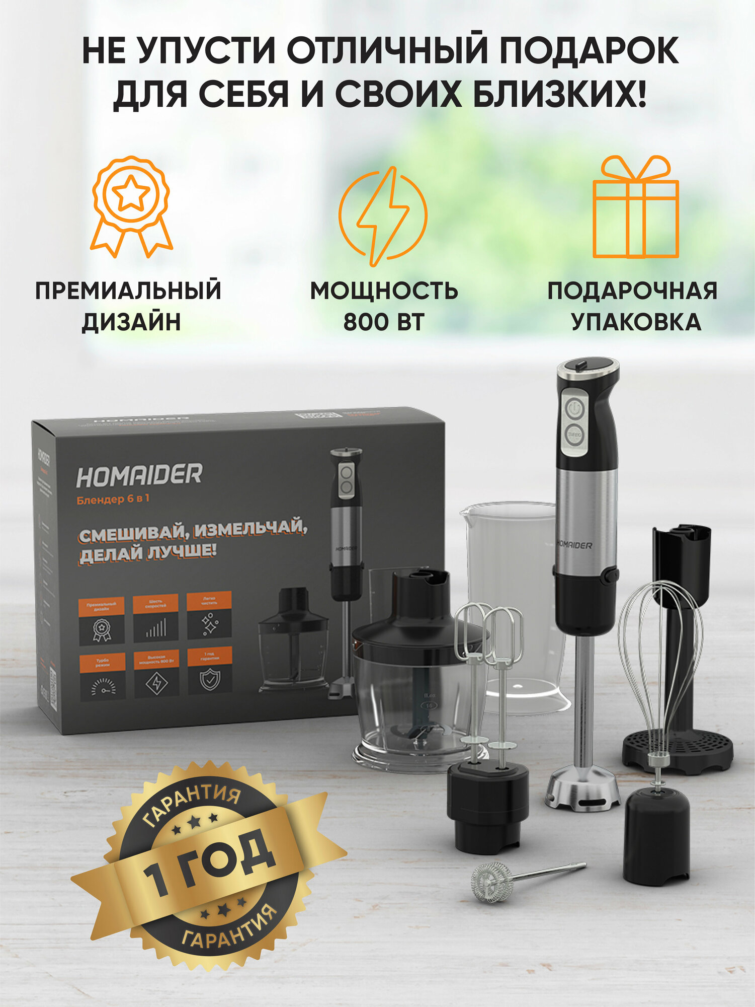 Homaider Блендер погружной электрический 6 в 1 800 Вт интересное: