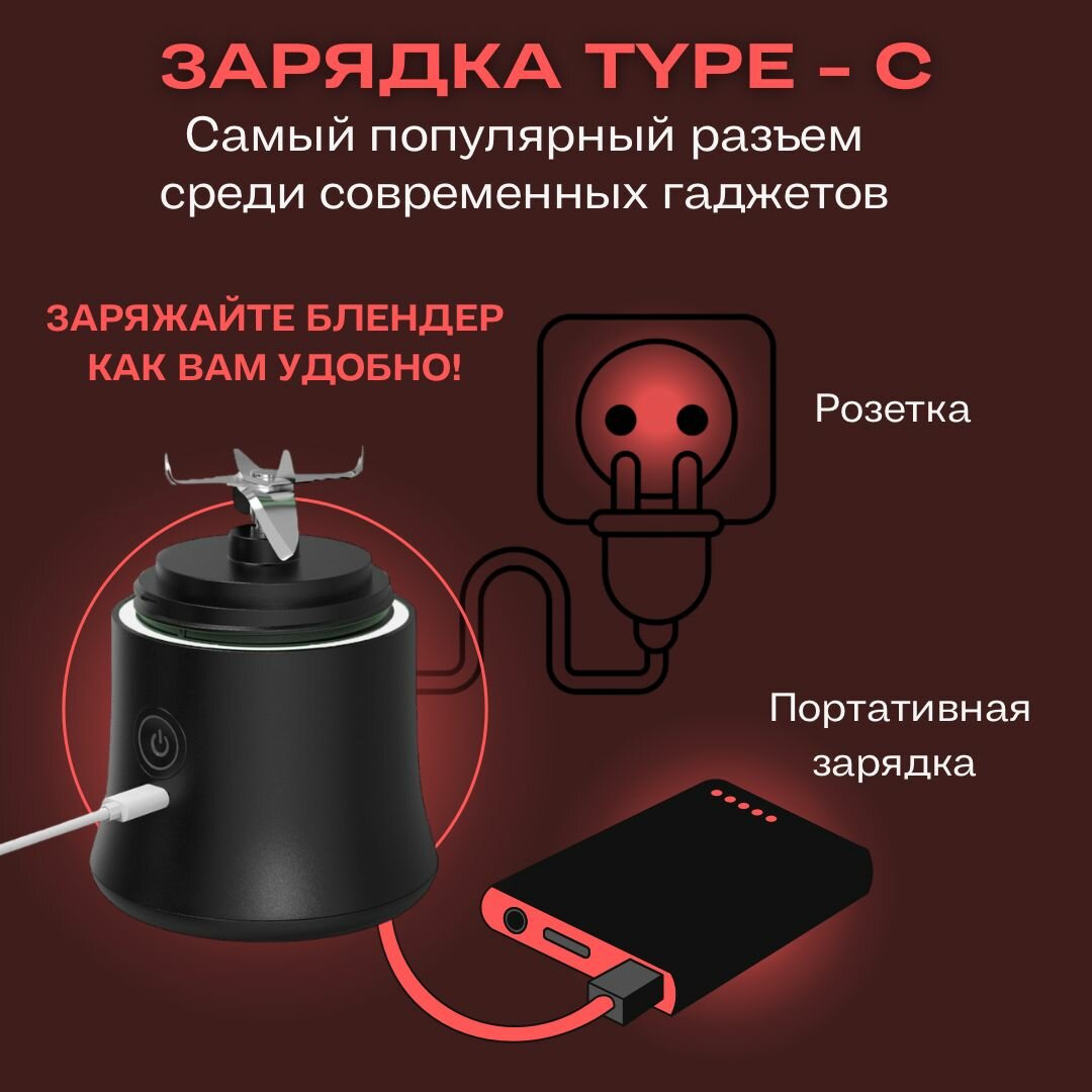 Портативный блендер для смузи и коктейлей черный «неяр» интересное: