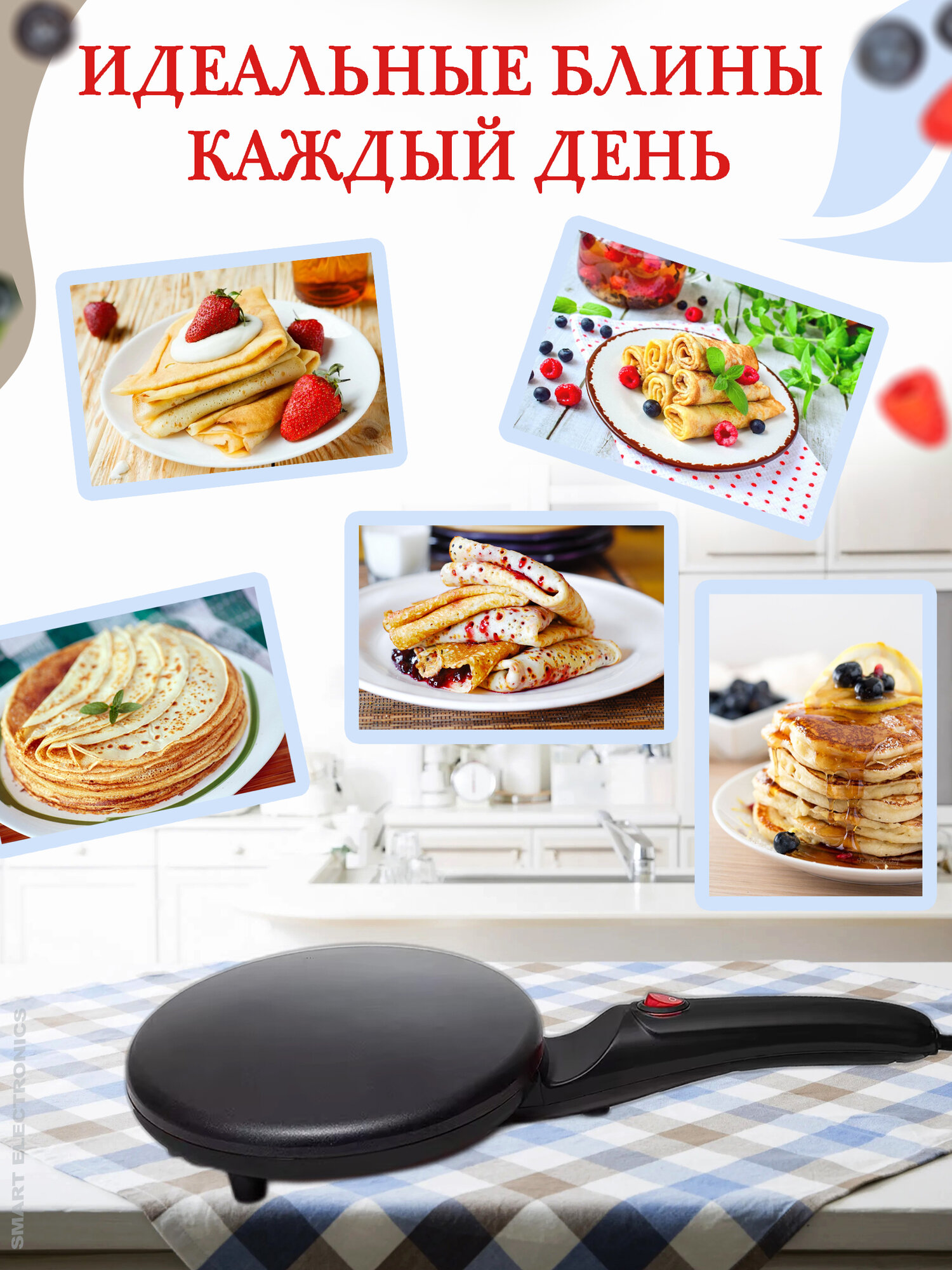 | Размер блинов (на основной плитке) | 20 см |