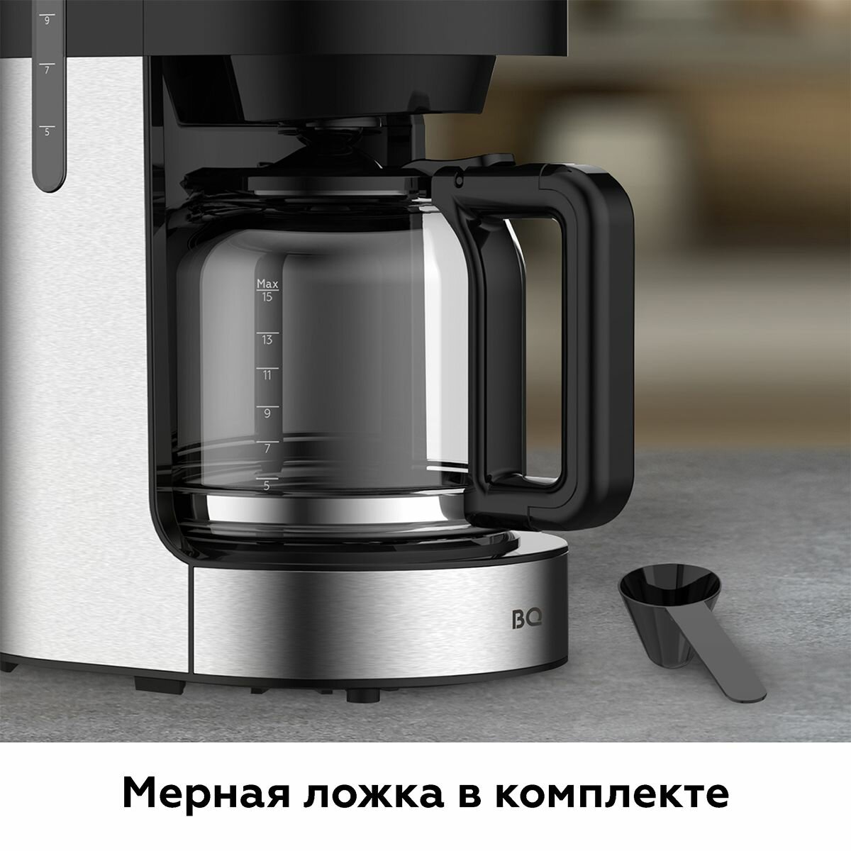 Капельная кофеварка BQ CM1001 Черно-серебристый / Мощность 900 Вт / Объем 1,5 л