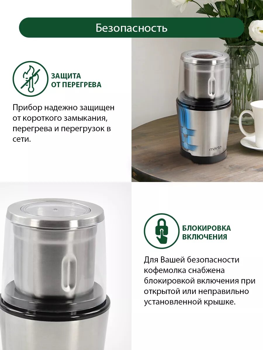 Кофемолка MARTA MT-CG2179A белый жемчуг интересное: