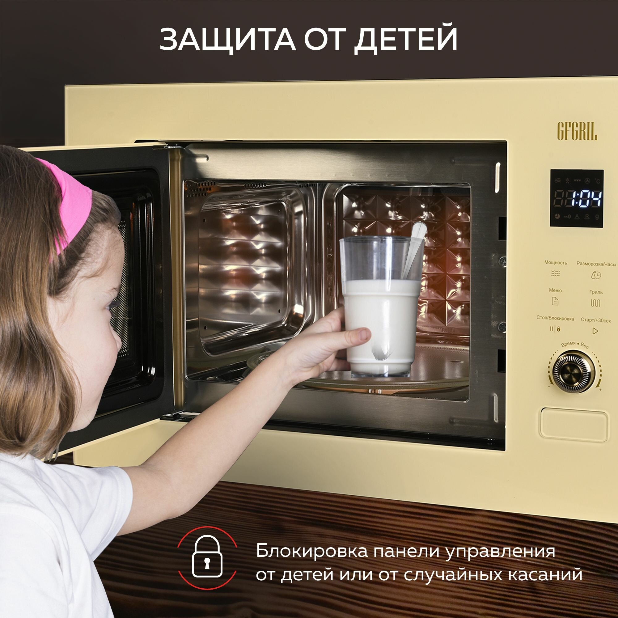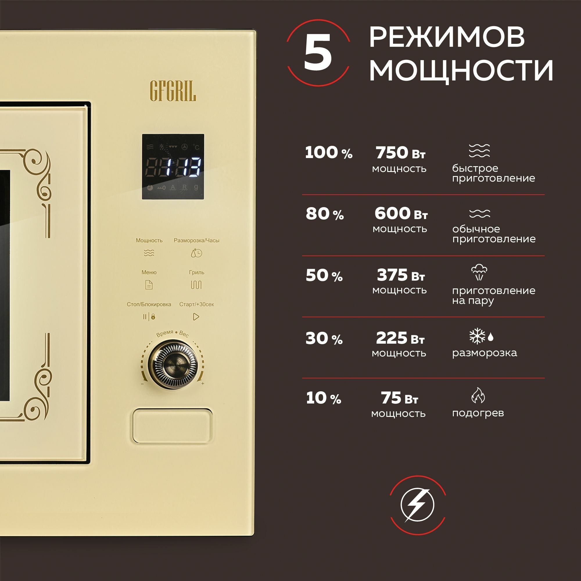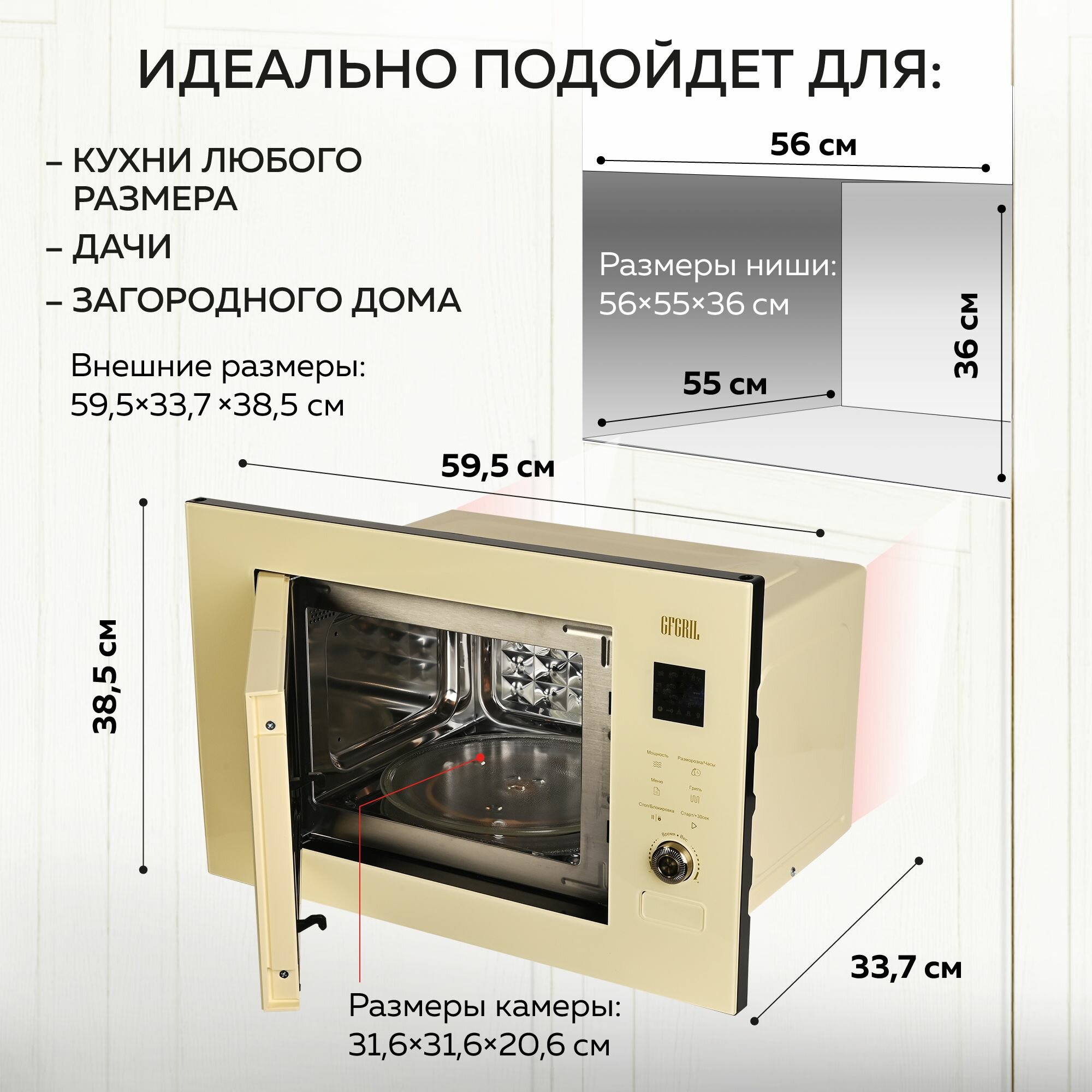 GFGRIL Микроволновая печь встраиваемая GF-MWO2150BI, 21 л, гриль, автопрограммы, 750 Вт, дизайн Rustic, цвет бежевый интересное: