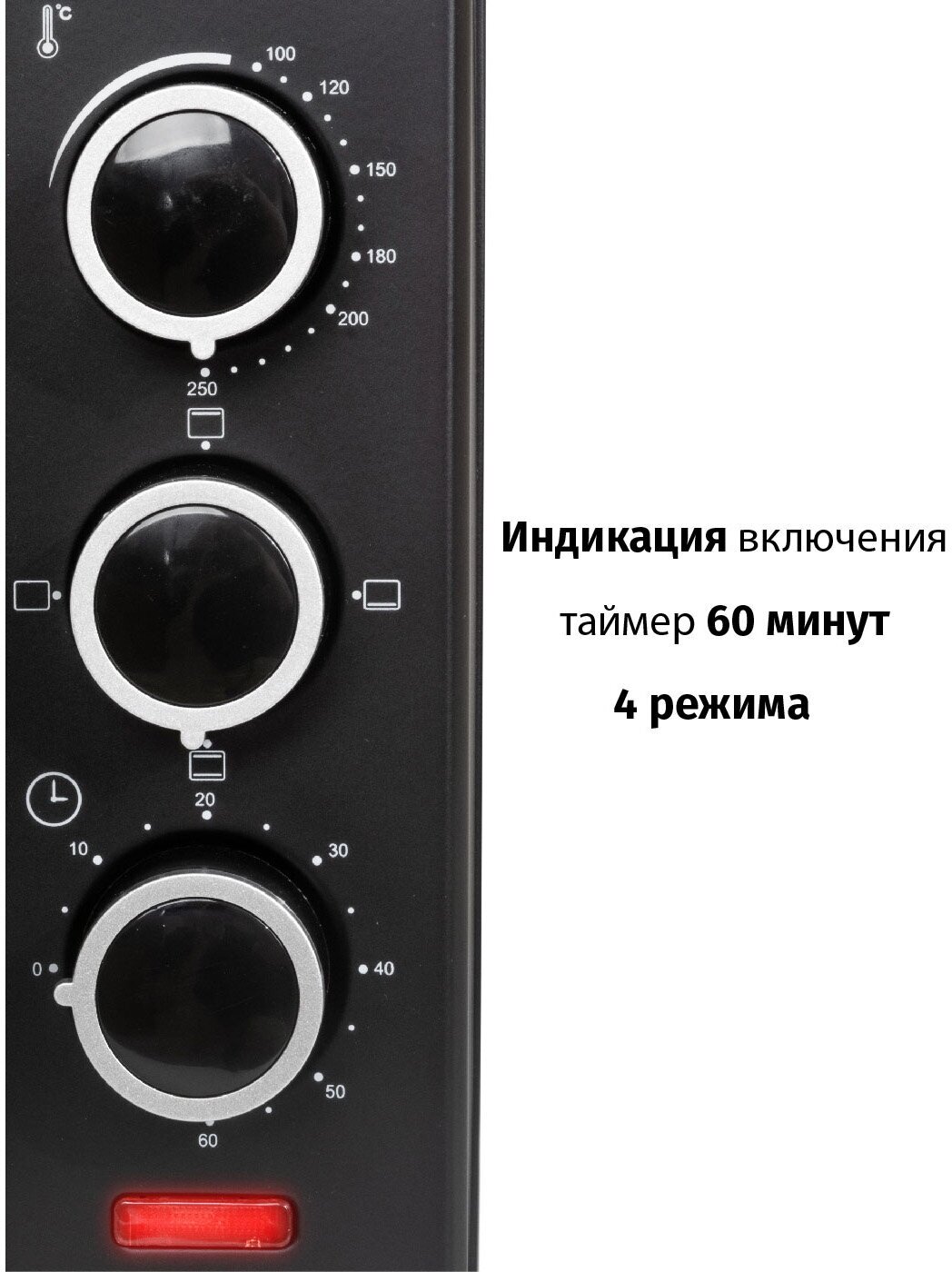 | Режимы | верхний гриль / верхний нагрев / верхний+нижний нагрев / нижний гриль / нижний нагрев |