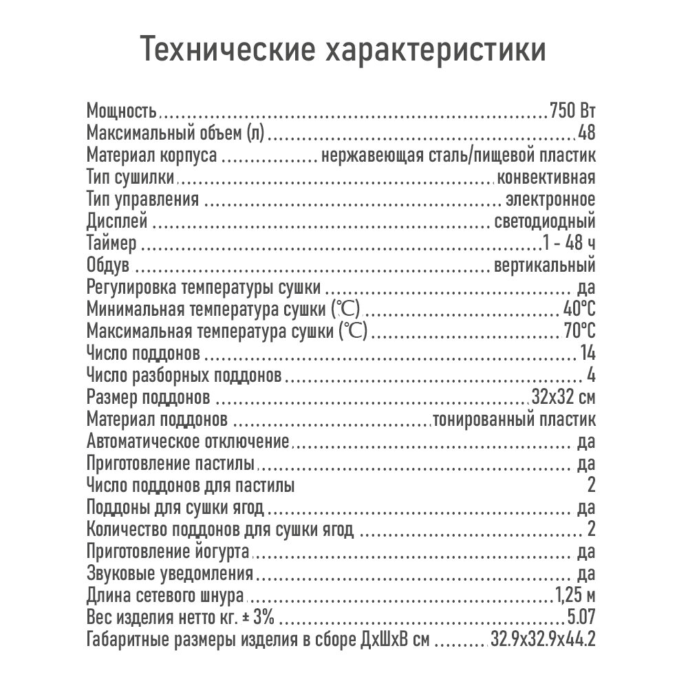 | Дополнительные функции | приготовление пастилы |