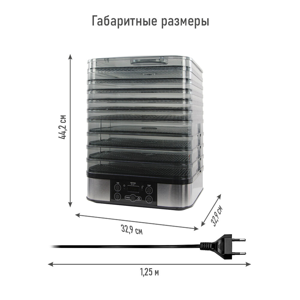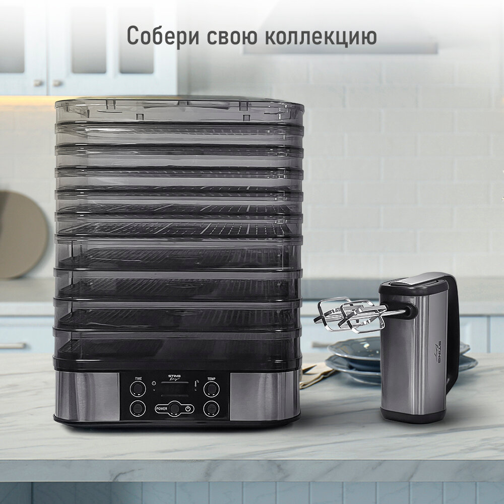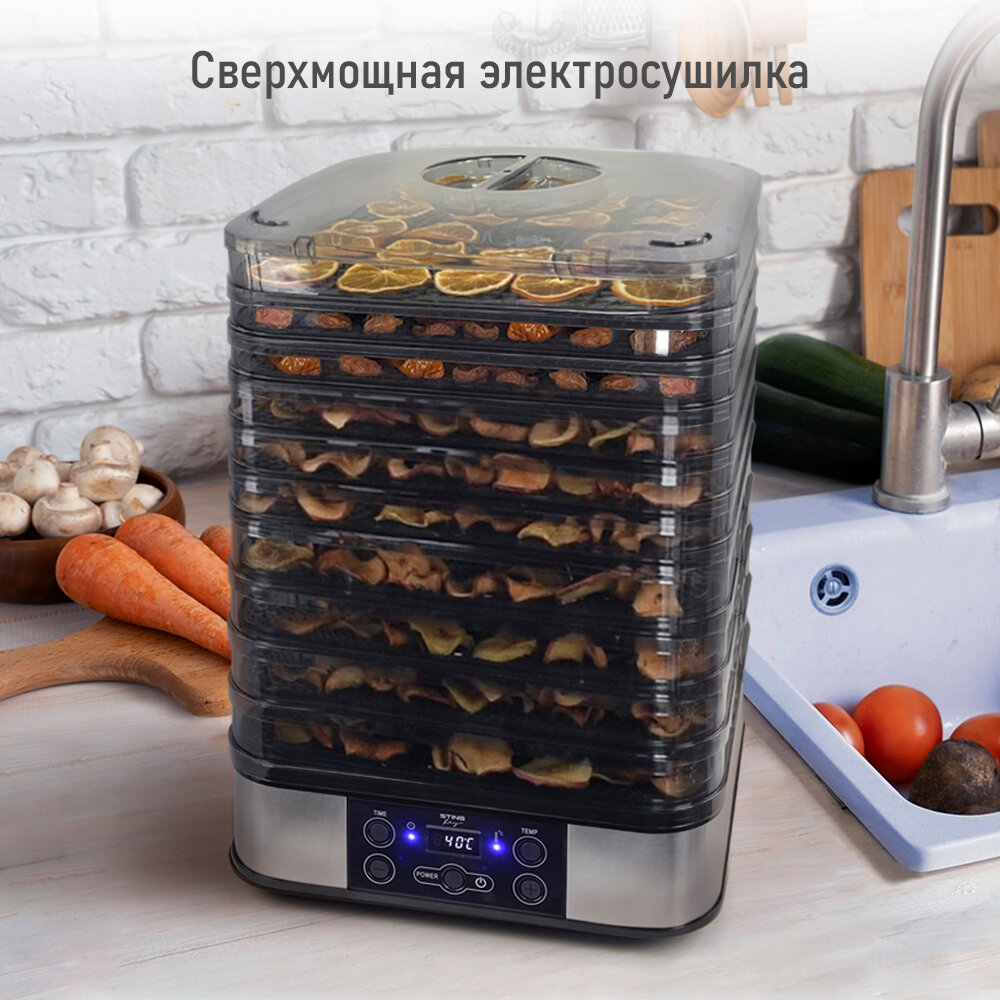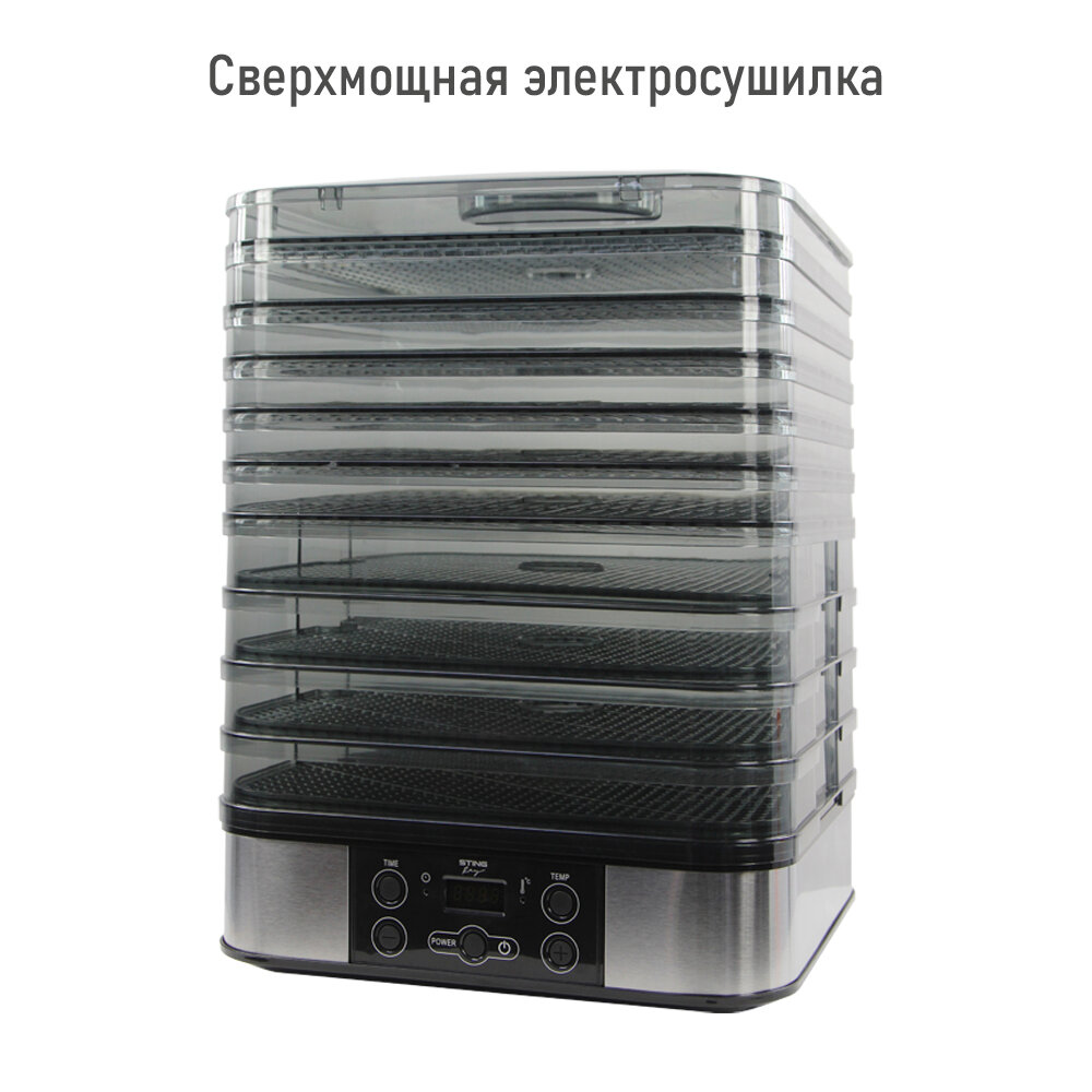 Купить Электросушилка STINGRAY ST-FD702A 14 поддонов: 4 разборных поддона для сушки, 6 обычных поддонов, 2 для ягод, 2 для пастилы черный жемчуг