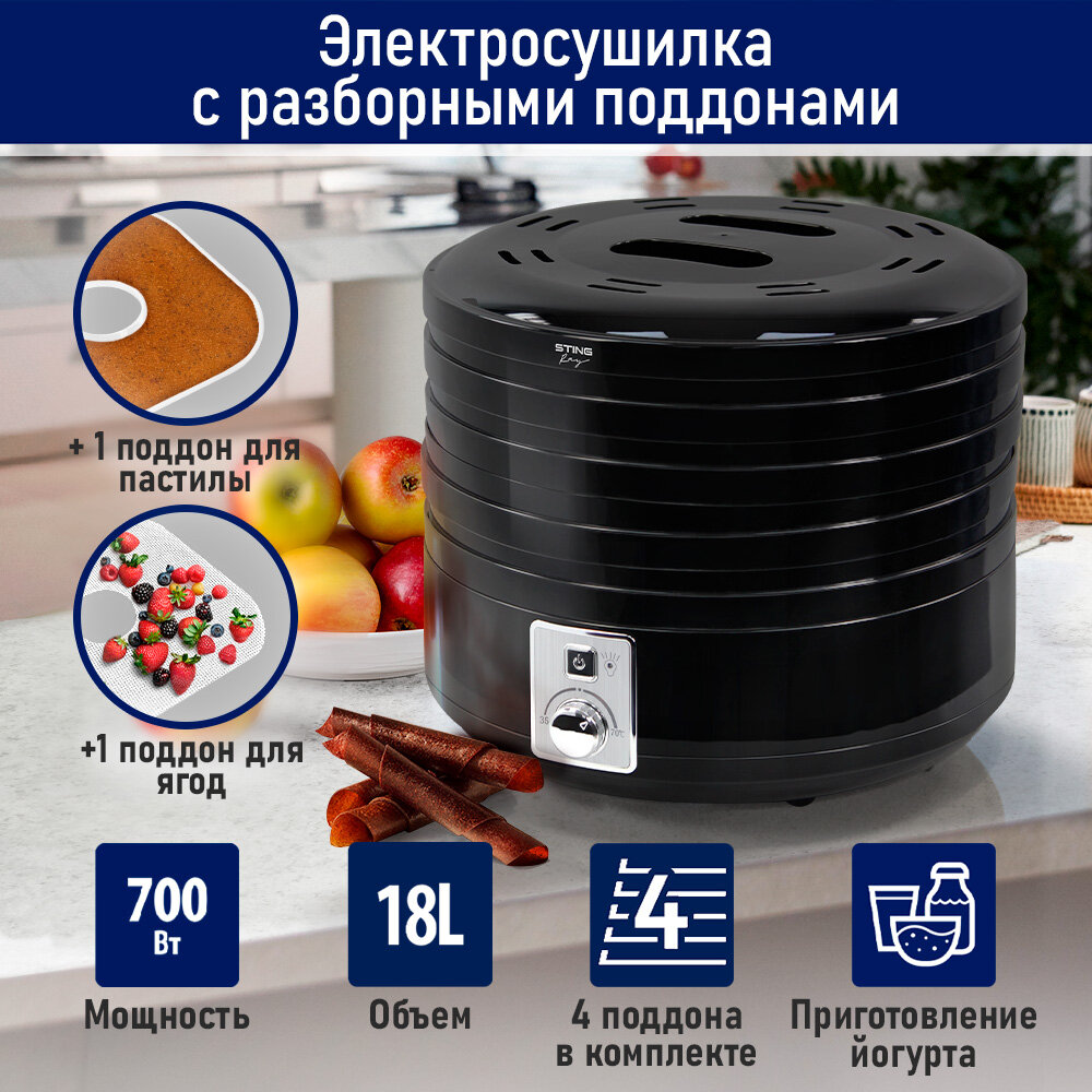 Купить STINGRAY ST-FD724A 6 поддонов: 4+1 для ягод+1 для пастилы черный жемчуг сушилка д/фруктов,овощей