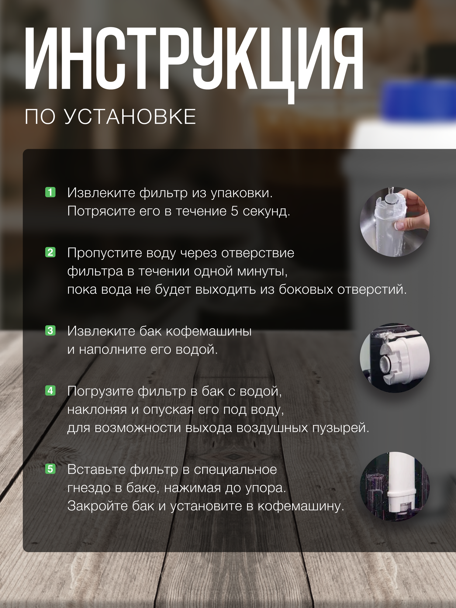 | Срок службы | 2 мес., Рекомендуется менять каждые 2 месяца или 250 чашек кофе. |