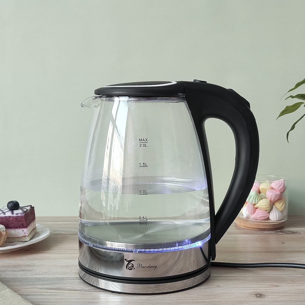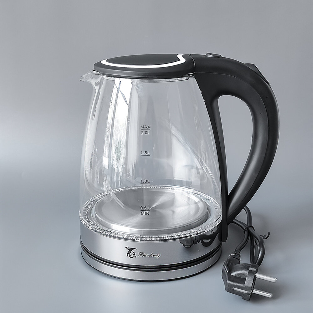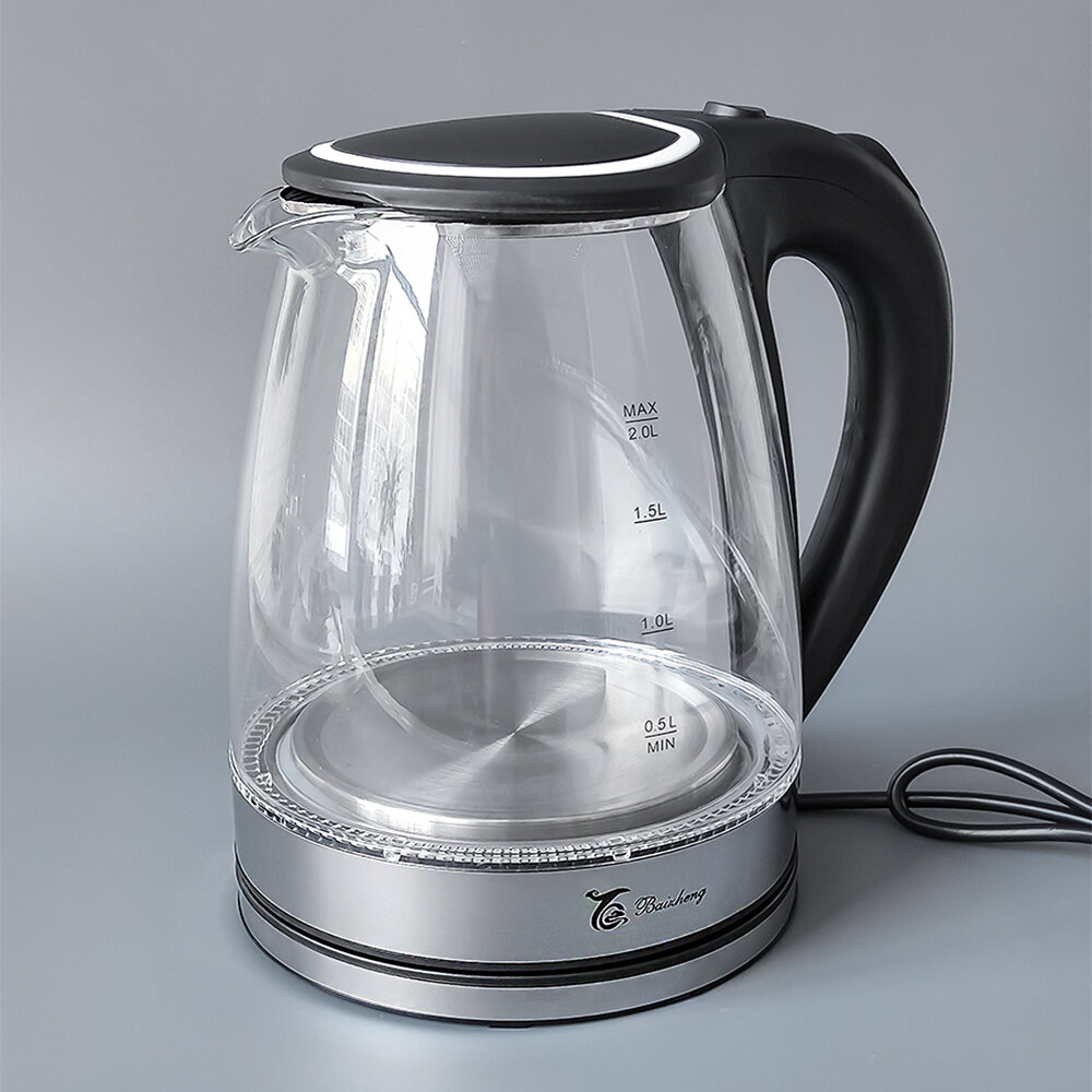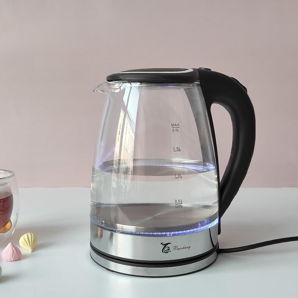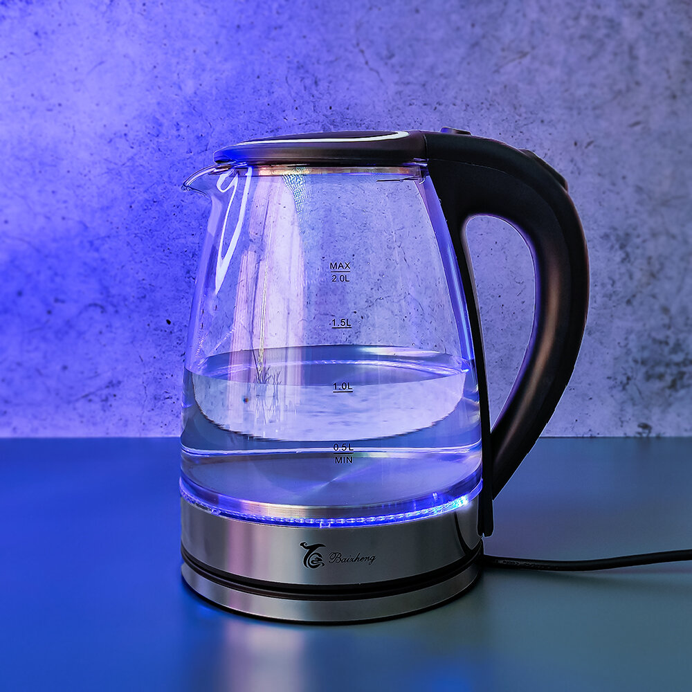 Купить Чайник стеклянный электрический 2л с подсветкой черный Baizheng