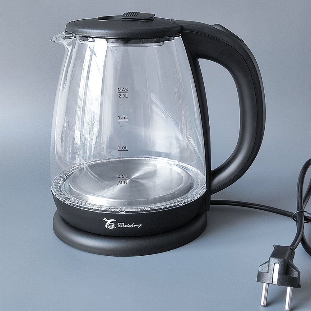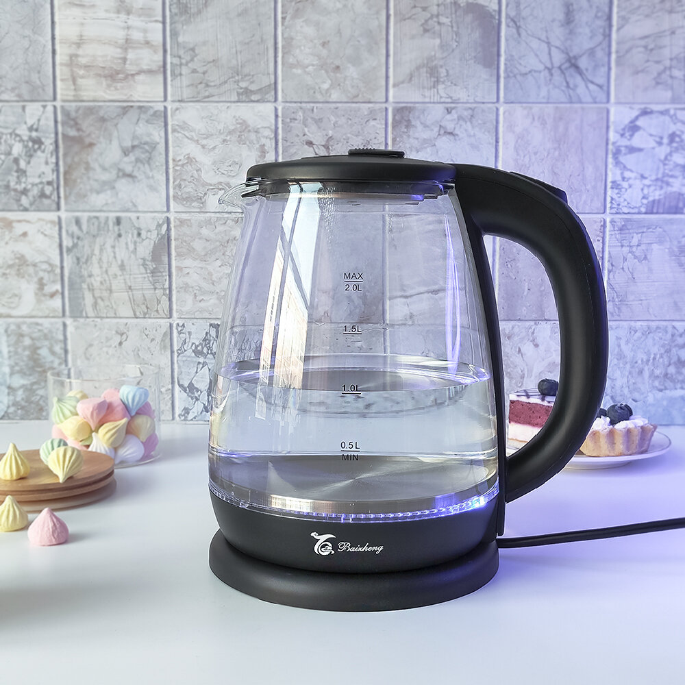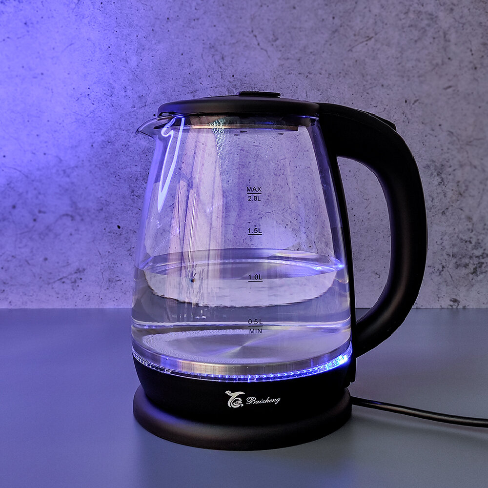 Купить Чайник стеклянный электрический 2 л с подсветкой черный Baizheng