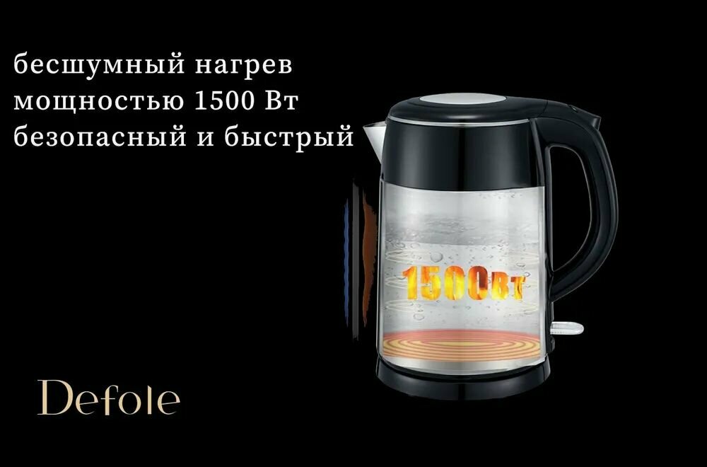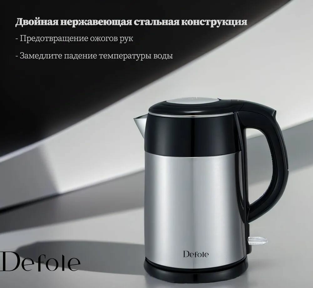 Defole Электрический чайник DF-3252A, черный, серебристый интересное: