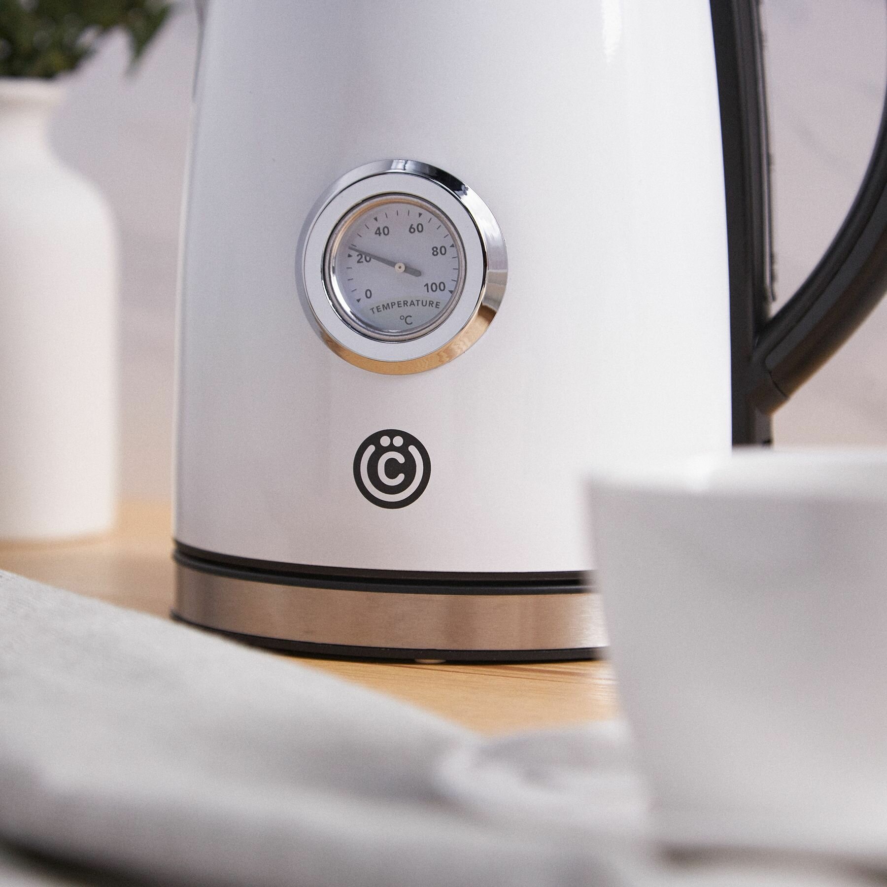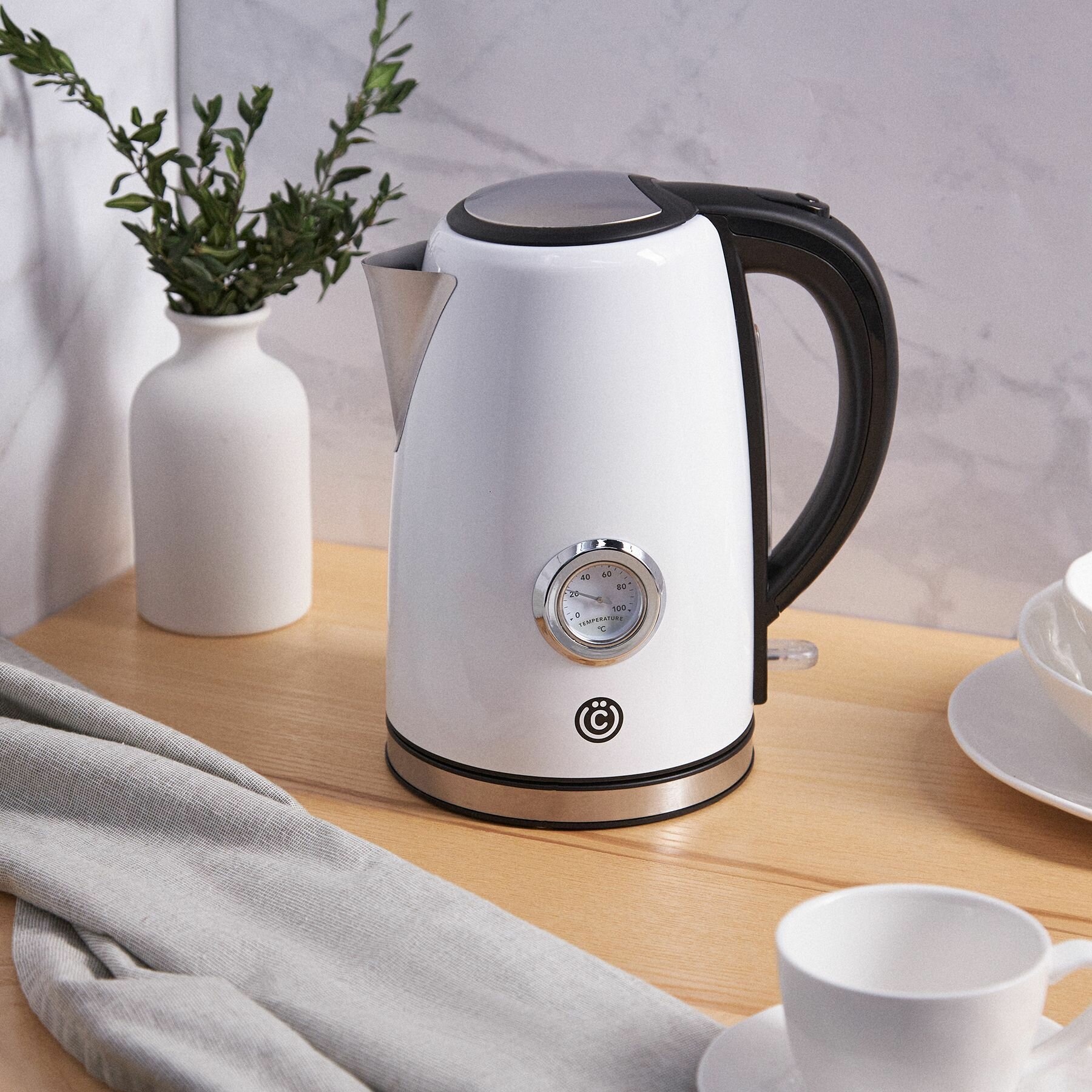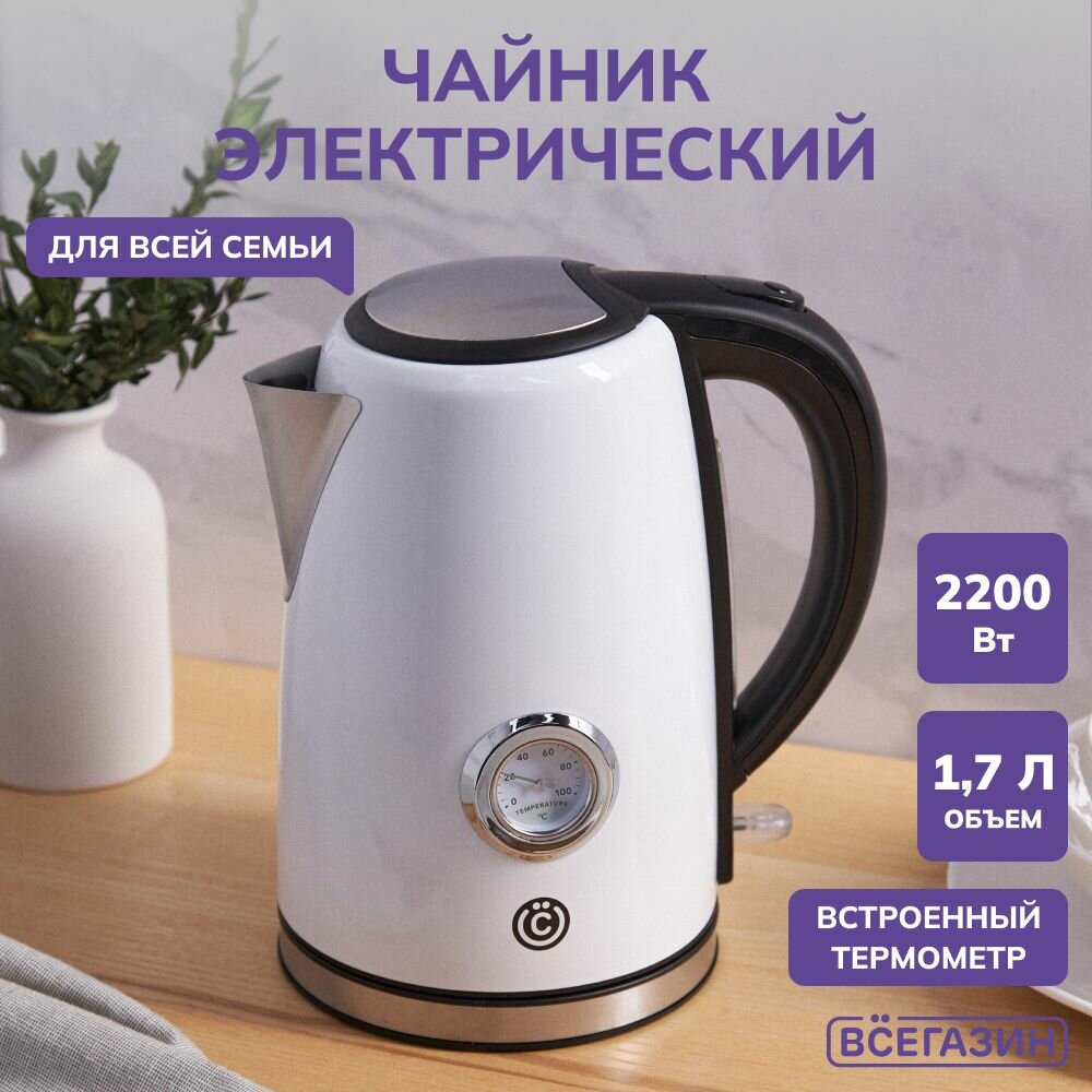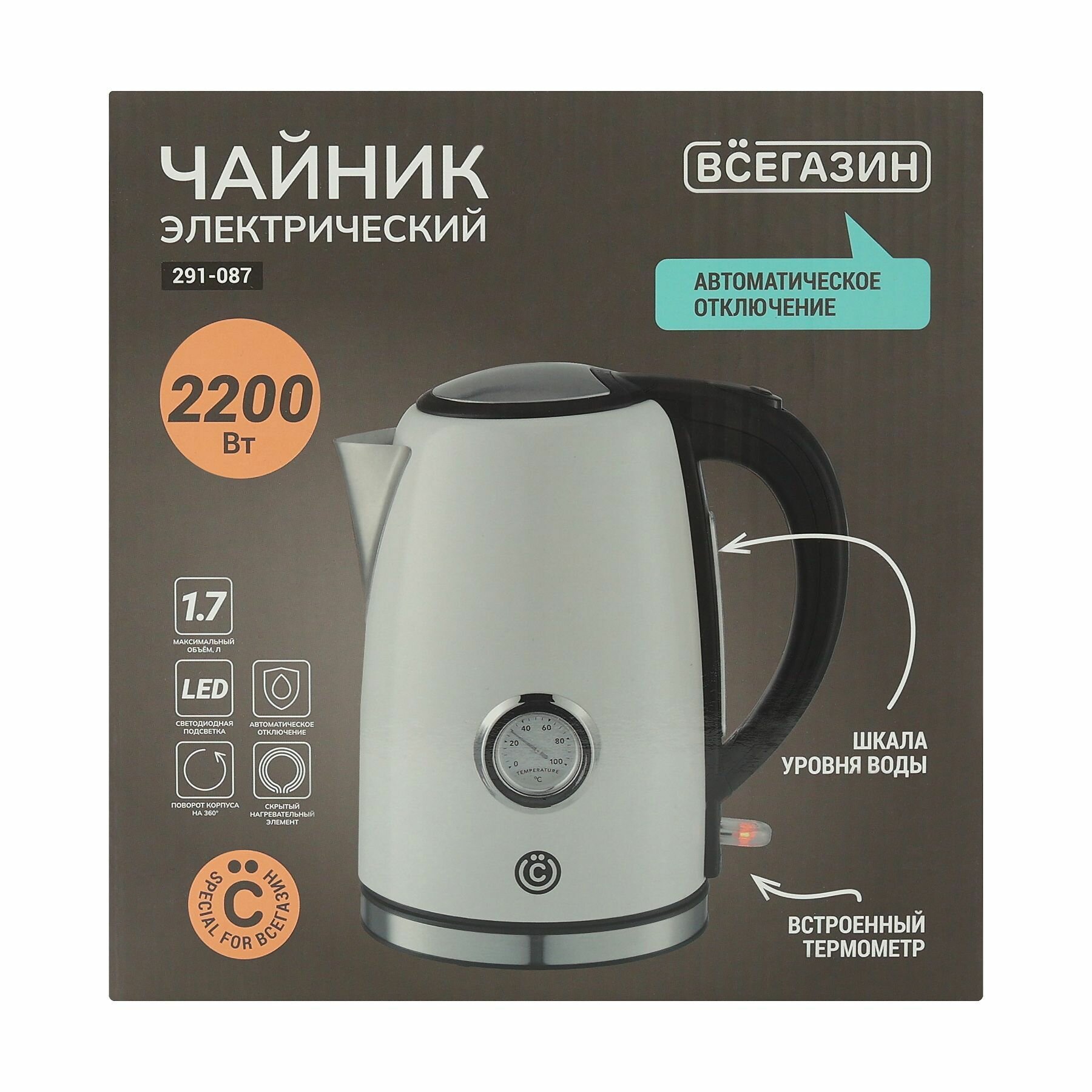 Купить Чайник электрический 1,7л, 2200Вт, скрытый нагр.элемент, автооткл., термометр, сталь