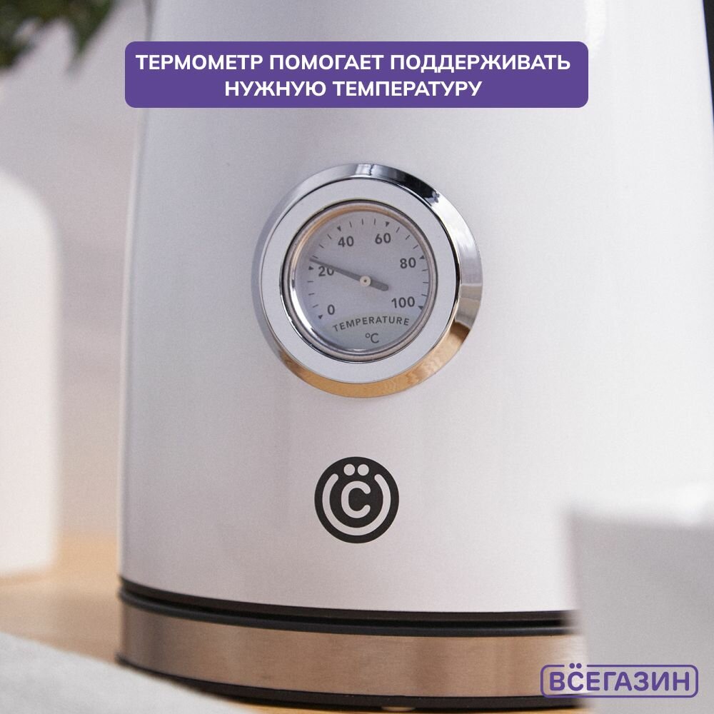 Чайник электрический 1,7л, 2200Вт, скрытый нагр.элемент, автооткл., термометр, сталь интересное: