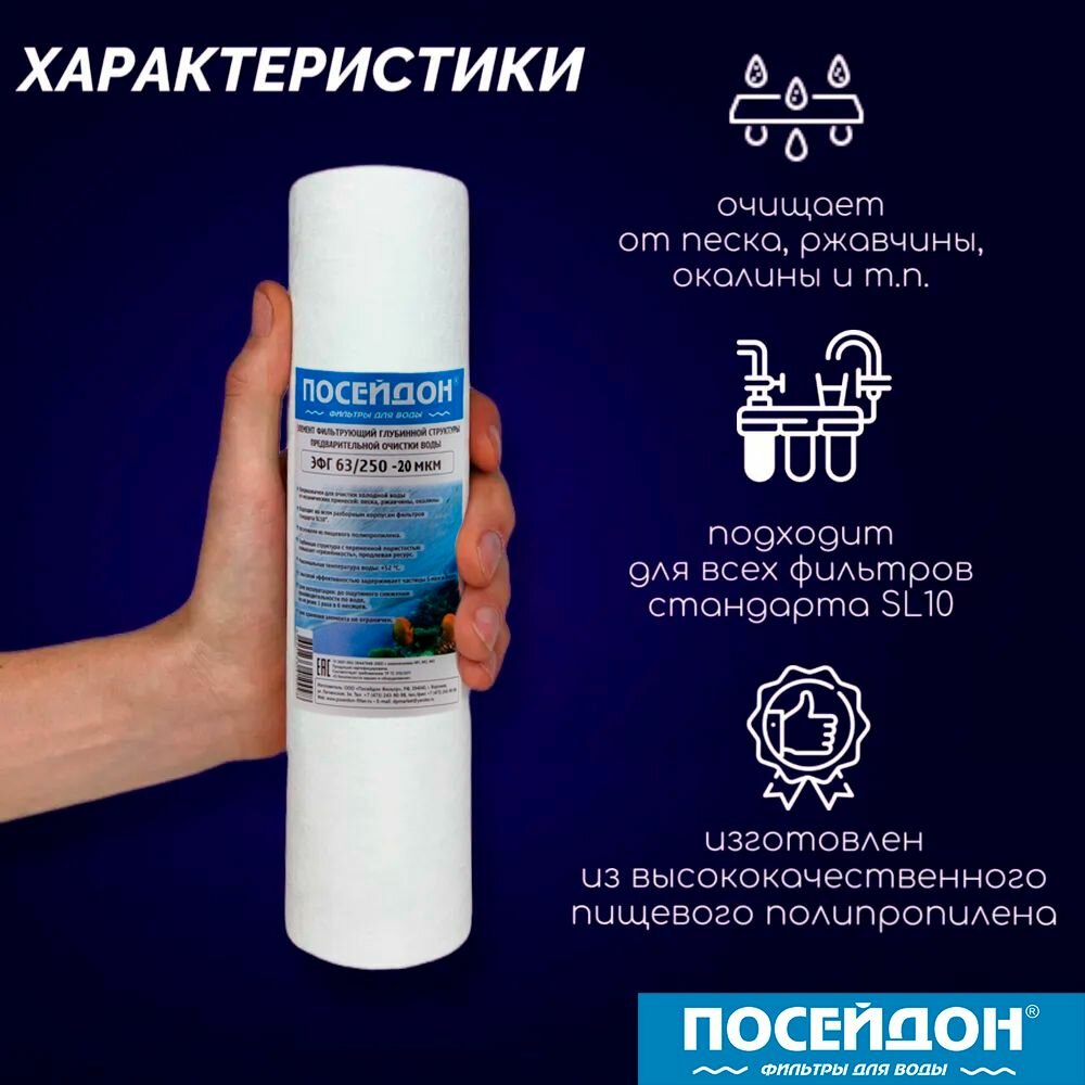 Картридж полипропиленовый ЭФГ 63/250 20 мкм элемент фильтрующий (набор 3 шт.) SlimLine10. Фильтр для воды размер частиц 20 микрон интересное: