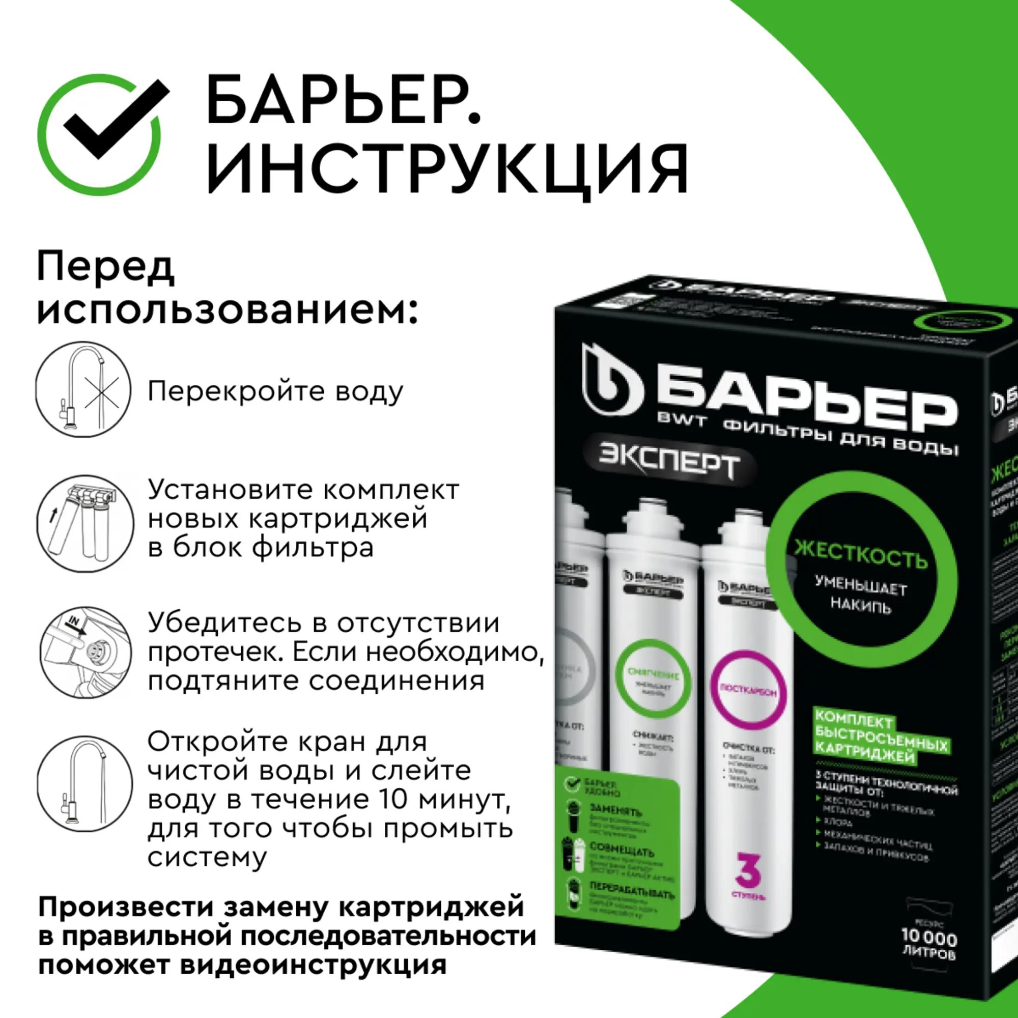 | Ресурс фильтрующего элемента | 10000 л |