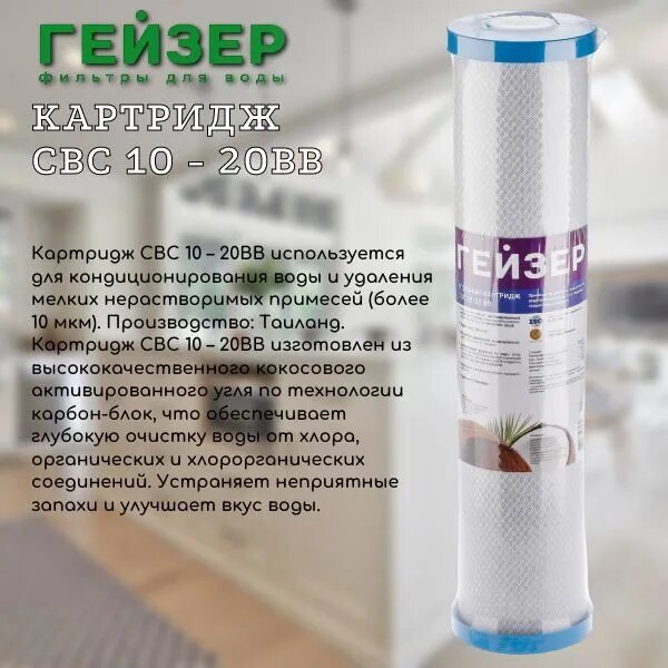 Сменный картридж Гейзер CBC 10-20BB из активированного угля интересное:
