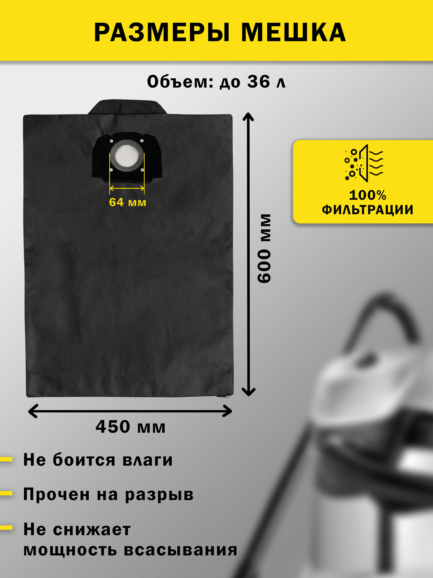 Купить Многоразовый мешок на молнии для пылесоса KARCHER WD4, WD5, WD6