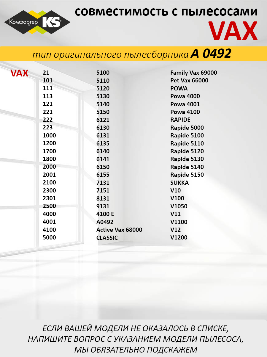 Пылесборники синтетические VX-05 для VAX (A 0492); упаковка 2шт. интересное: