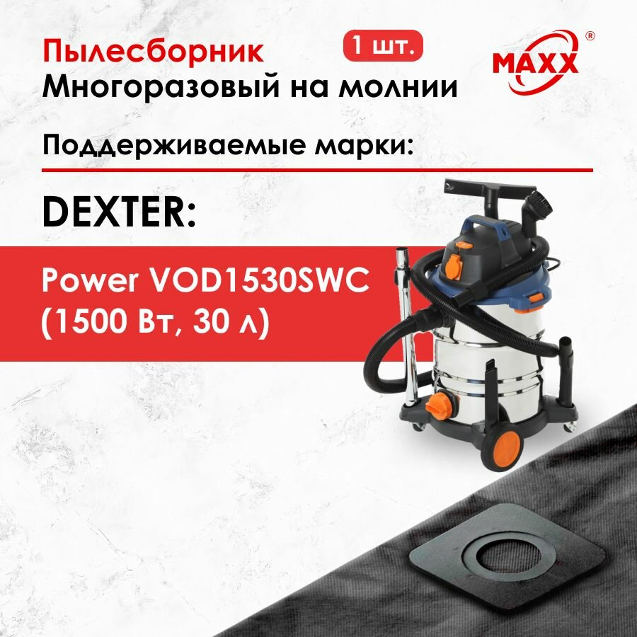 Мешок - пылесборник PRO многоразовый на молнии для пылесоса Dexter Power VOD1530SWC 30 л, 30 л 1500 Вт, Арт. 18057179