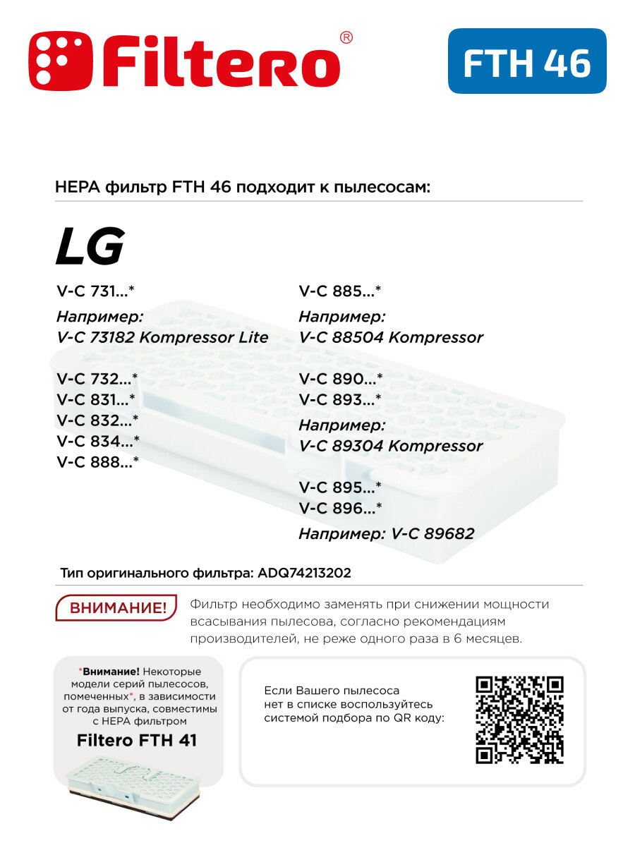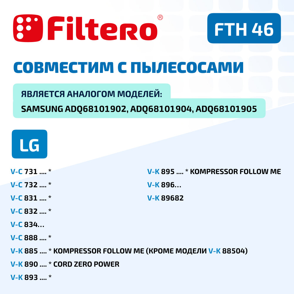 HEPA фильтр Filtero FTH 46 для пылесосов LG VC, LG VK интересное: