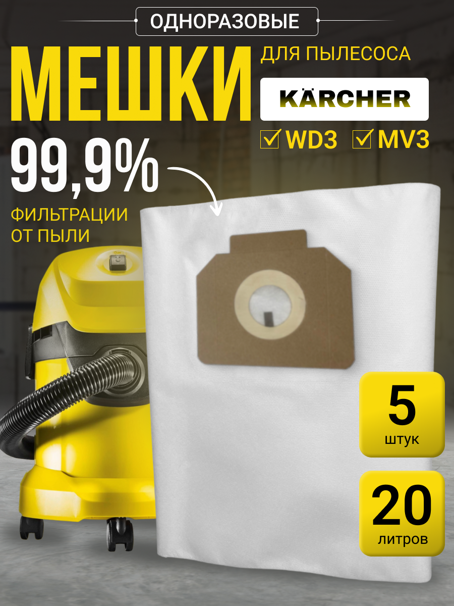 Мешки одноразовые для пылесосов Karcher WD3 MV3, 20л, 5 шт интересное: