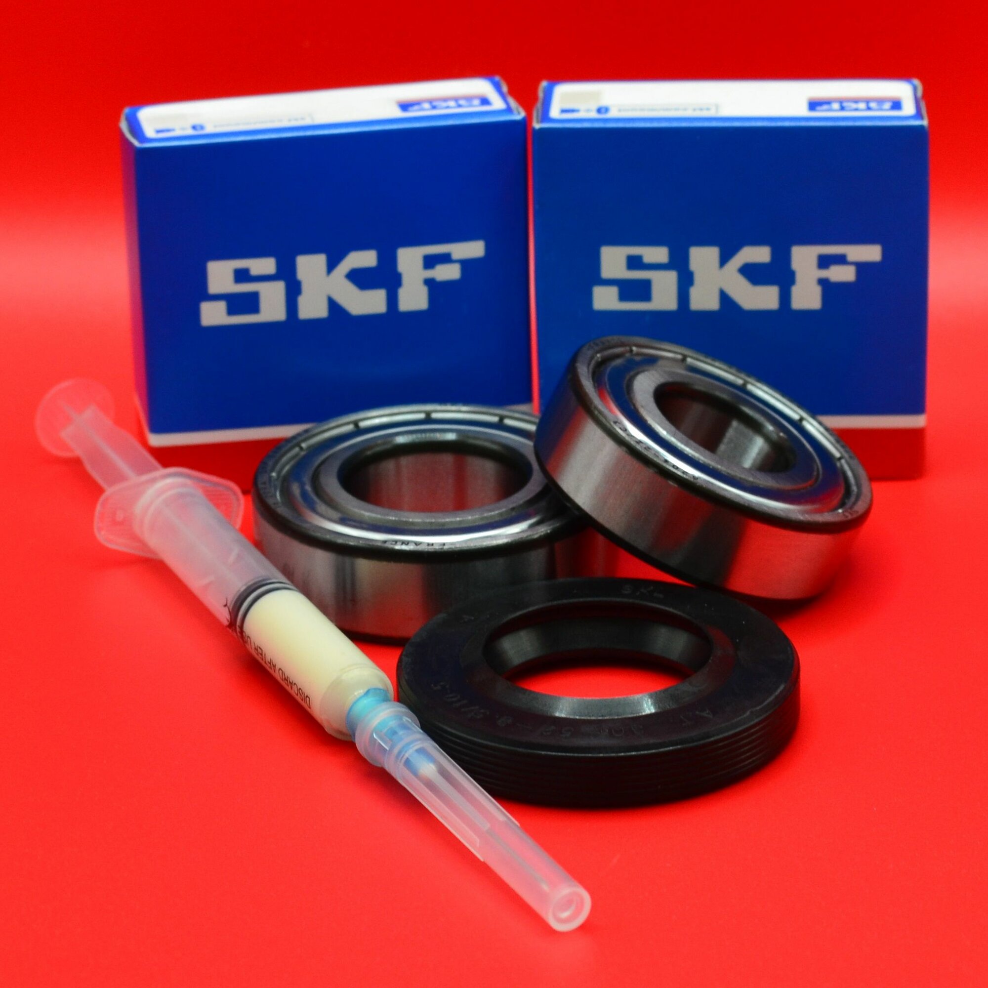 Купить Ремкомплект неразборного бака Indesit, Hotpoint-Ariston, Атлант, Bosch подшипники SKF 6204/6205 + сальник 30*52*8,5/10,5+ смазка HYDRA-2