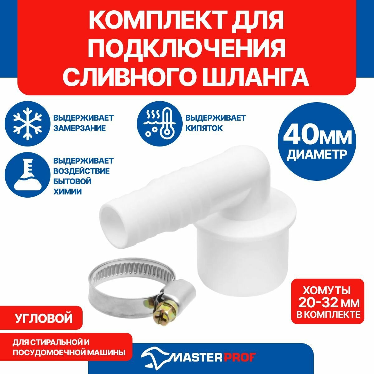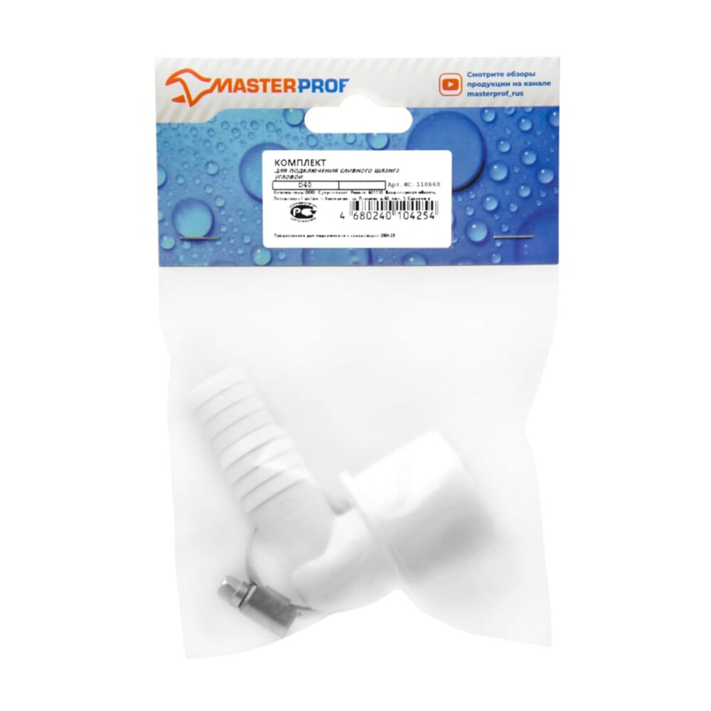 Купить Комплект подключения для сливного шланга стиральных и посудомоечных машин, полипропилен, диаметр 40 мм, угловой, MasterProf