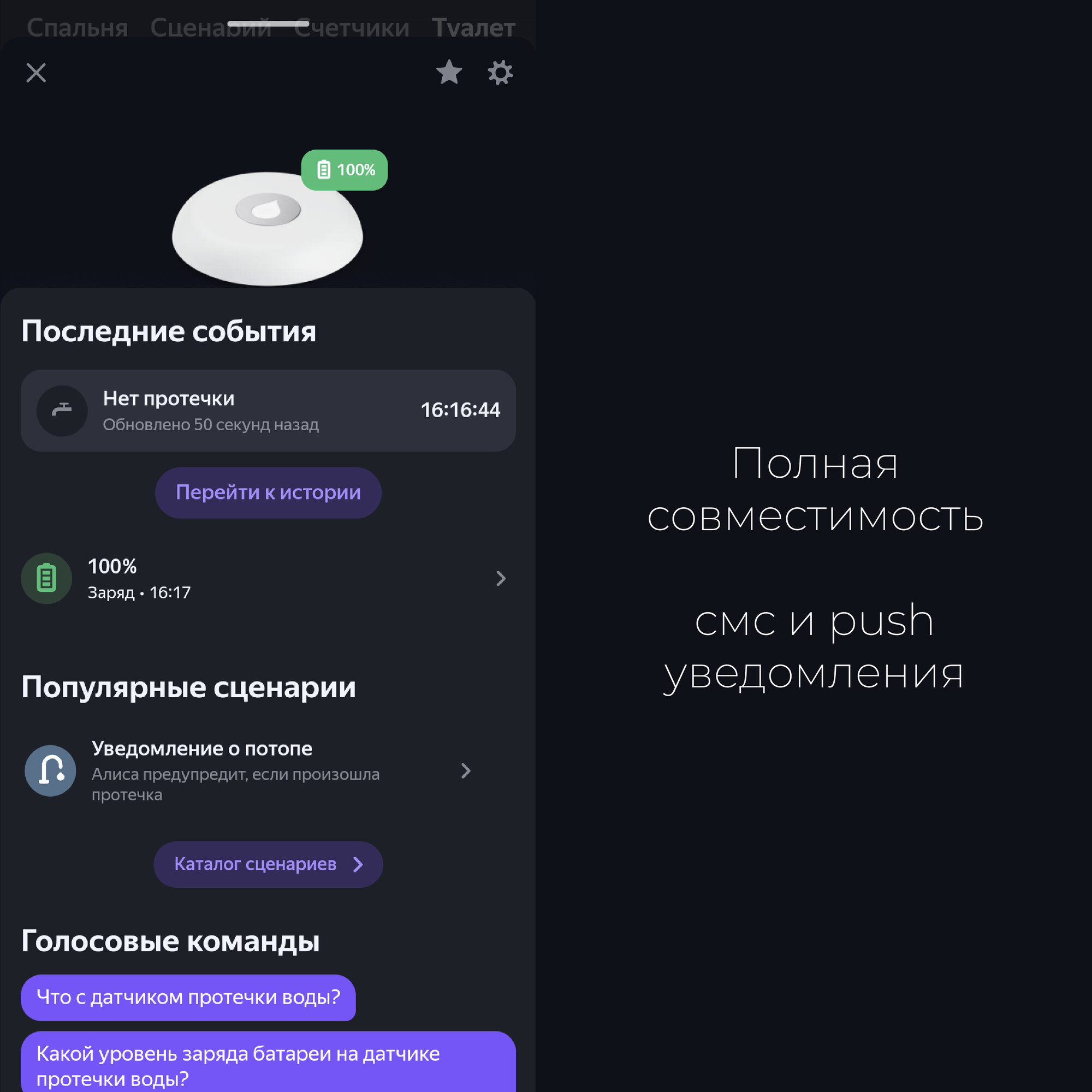 Датчик протечки Tuya ZigBee 3.0 интересное: