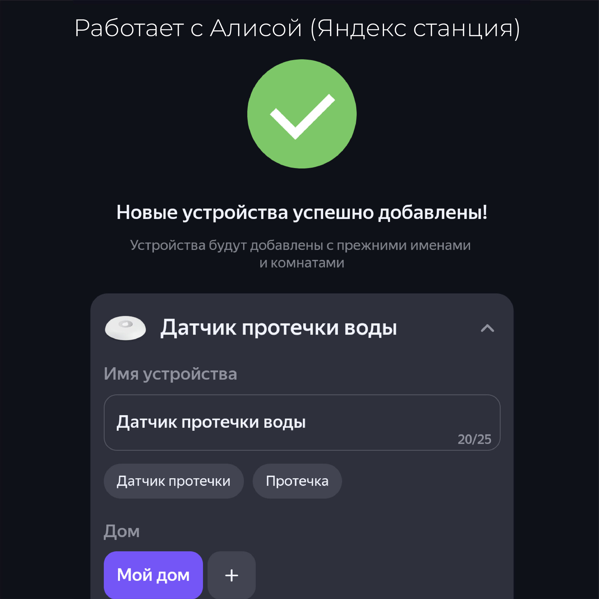 | Экосистема Умного дома | Amazon Alexa / Apple HomeKit / Majordomo / Tuya Smart / Xiaomi Mi Home / Умный дом Sber / Умный дом VK / Умный дом Яндекса |
