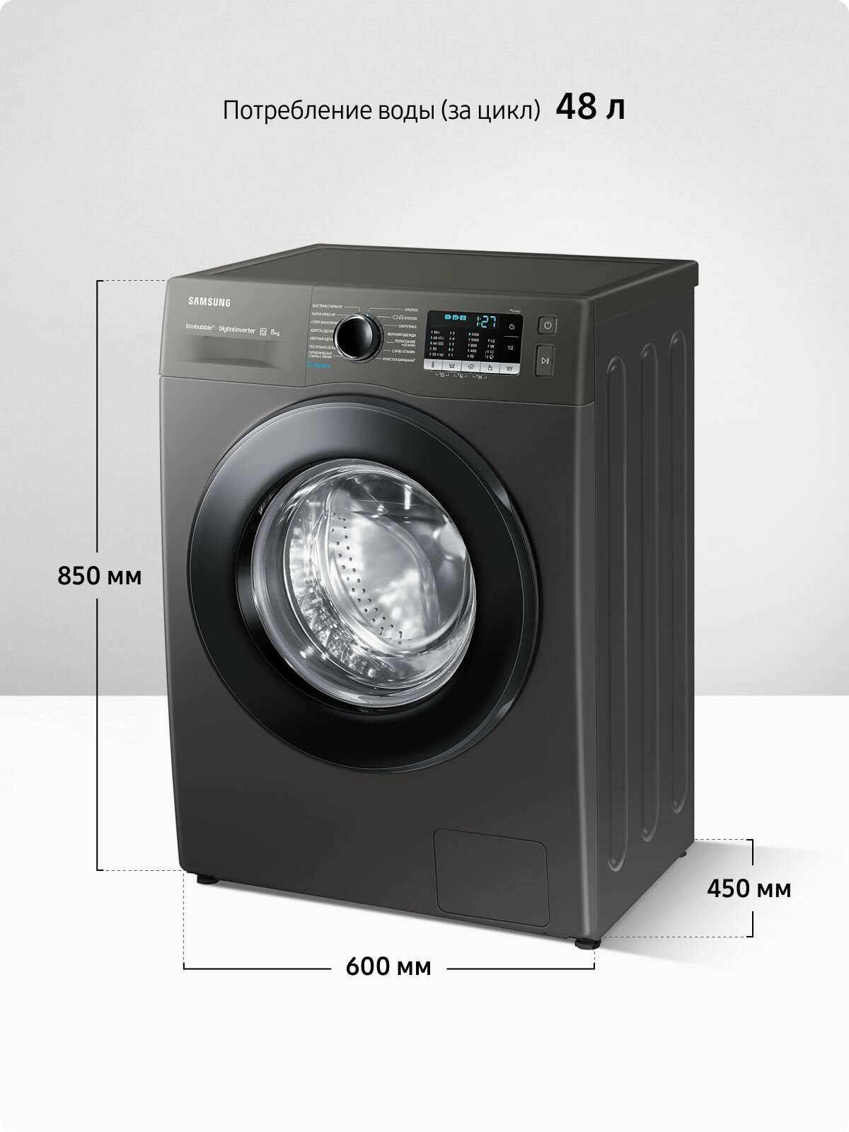 СохранитьУзкая стиральная машина Samsung WW80AGAS21AXLP, 8 кг, с электронным управлением, инверторным мотором, технологией Eco Bubble, графит / черный интересное: